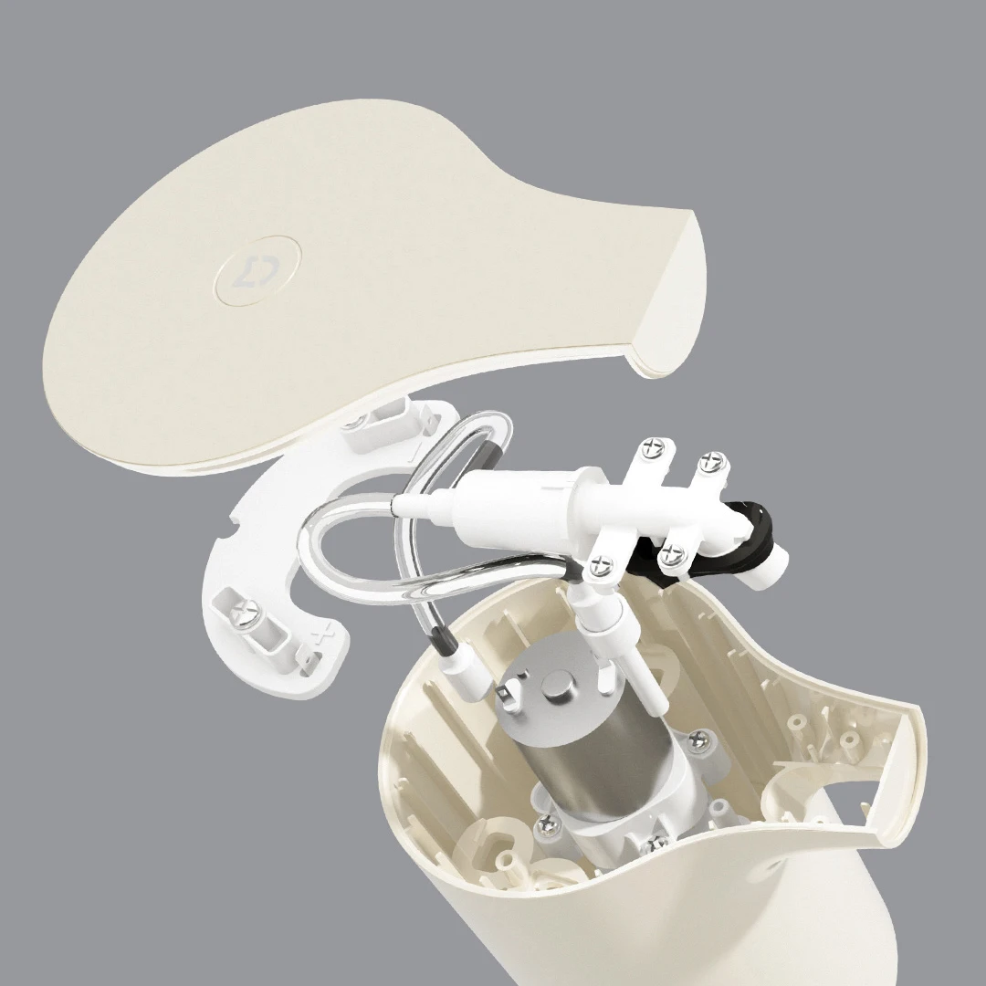 Компактный электродвигатель размещается в корпусе устройства на специальных виброгасящих подкладках из резины. Он не только образует объемную пену, но и делает это почти бесшумно. Кроме того, благодаря низкому энергопотреблению всего 4 батареек АА ему ему хватит на целых 9 месяцев работы.