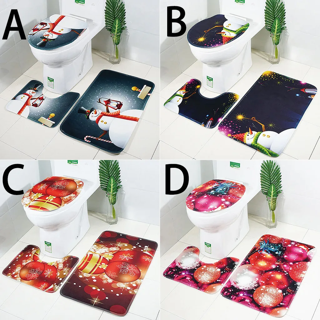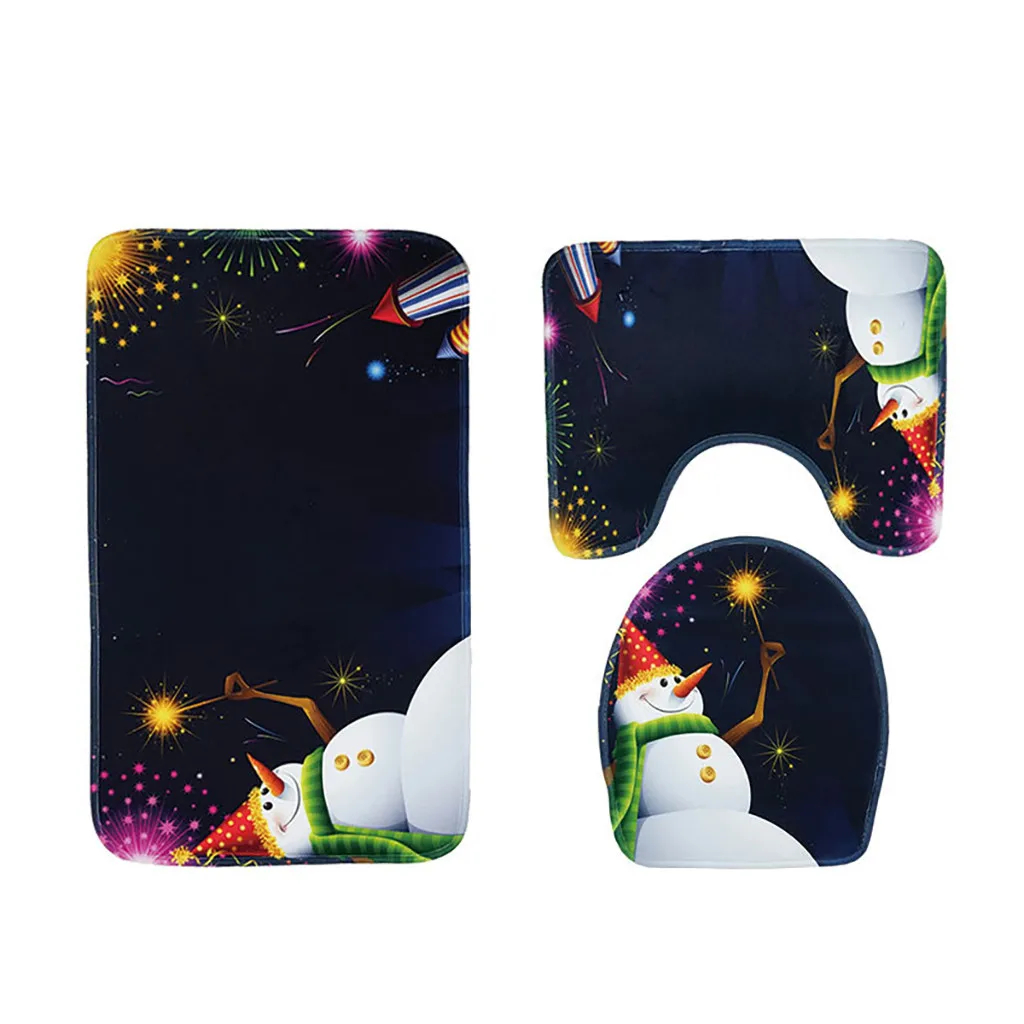Рождественский принт, коврик для ванной комнаты, набор ковров из трех частей