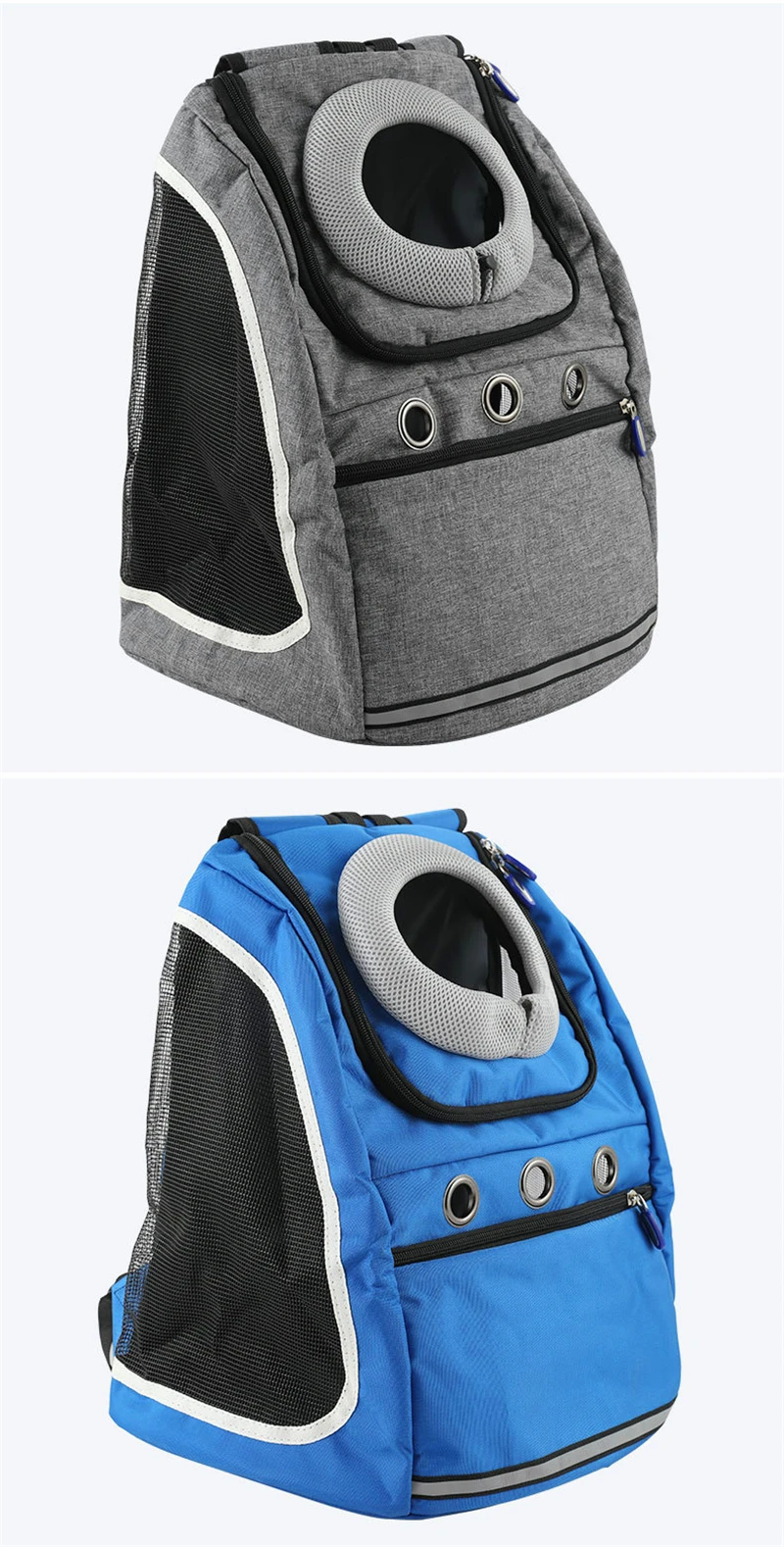 2. Сетчатые окна проветриваются и видны, позволяют вашему питомцу дышать свободно и расслабляться. 3. Верхний вход обеспечивает легкий доступ. 4. Передний карман помогает хранить поводок, свисток, воду, закуски, лакомства и другие предметы первой необходимости.