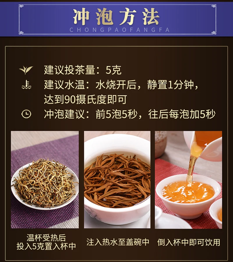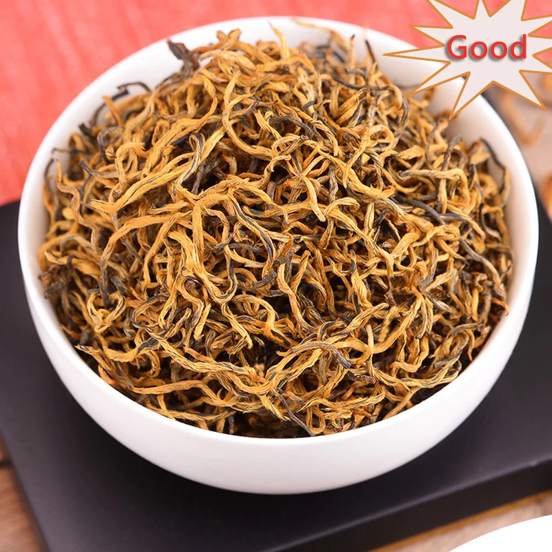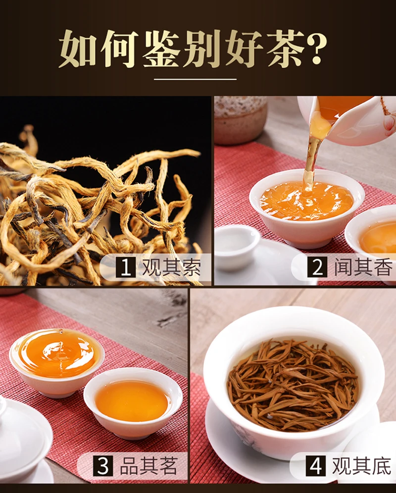 Jinjun бровей Янтарный Золотой бровей после заваривания. Он имеет легкий и сладкий аромат. Вкус сладкий и Смазывающий. Бутоны внизу листьев прямые и бронзовые.