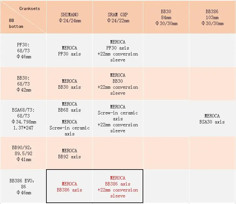 Использование: BB386 для звездочек Shiman0 (вал 24 мм), с конверсионной муфтой от 24 до 22 мм, также может использоваться для передачи для звездочек SRAM (вал 24-22 мм)