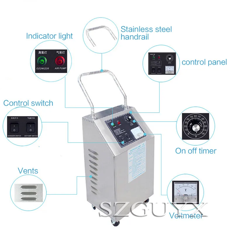 Название продукта: машина для дезинфекции озона Производство озона: 3 г/час Номинальная мощность: 100 Вт Модель продукта: HY-004 -3A Метод охлаждения: воздушное охлаждение Источник питания машины: ac220в/50 Гц Размер оборудования: 320*250*600 мм Вес машины: 8,7 кг Диапазон времени: 10-120 минут Использование источника воздуха: источник воздуха Область дезинфекции: 60-145m3 Объем воздуха: 16 л/ч