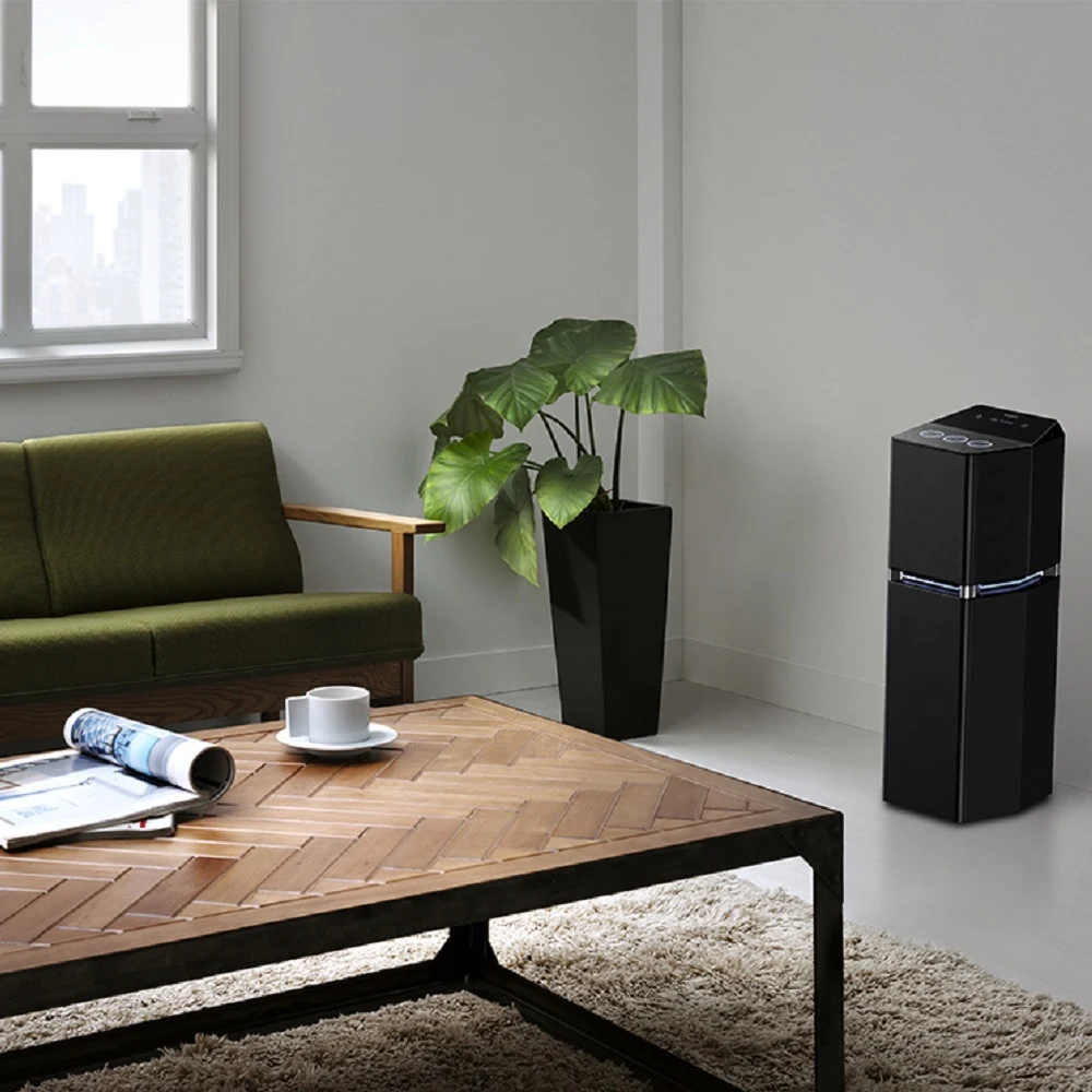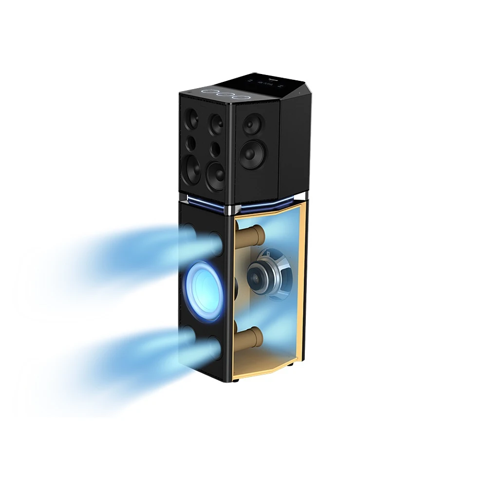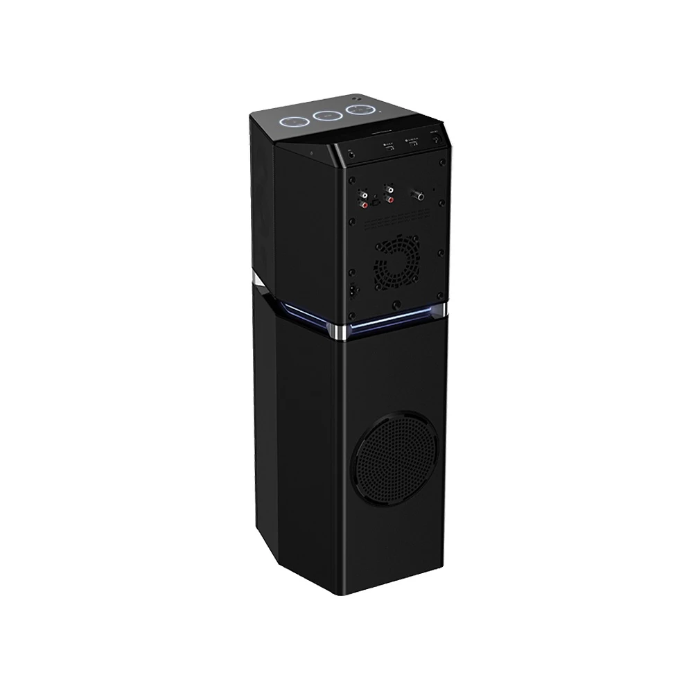 Геометрия корпуса минисистемы UA7 – оригинальная и рациональная задумка. Устройство занимаем минимум места, его можно разместить на полу или, например, на комоде – там, где оно будет наиболее уместным. При этом качество воспроизведения не пострадает, ведь система выдаёт трёхсторонний широконаправленный звук. Элементы управления настройками и режимами аудиосистемы расположены на глянцевой верхней панели. Сенсорные кнопки с подсвеченной обводкой и стильная подсветка голубым цветом в центральной части корпуса словно напоминают: космическое будущее уже наступило.