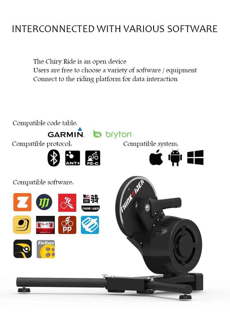 В комплект входит: 1. Умный велотренажер * 1 2. Адаптер питания * 1 3. Быстрый выпуск * 1 4. ANT + адаптер * 1 5. 8-9-10 скоростная шайба * 1 6. Быстроразъемные компоненты для преобразования оси бочки * 4 7. Руководство * 1