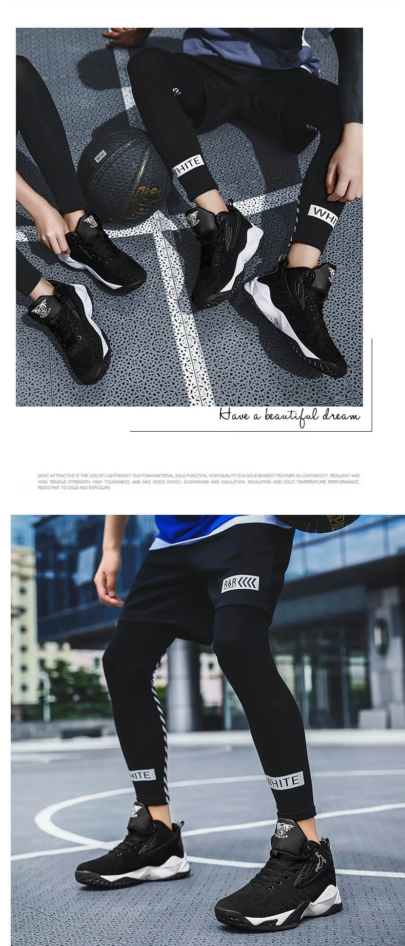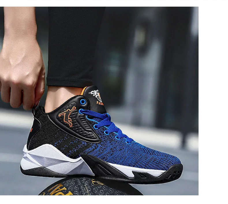 Men's Flyknit Basketball Shoes Mens Breathable Cushioning Sneakers Women Sports Shoes High Top Basketball Boots Sport Shoes Male
