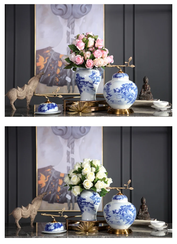 Роскошная ваза для дома Цветочная композиция для гостиной современный синий и белый фарфоровый домашний Декор Аксессуары кувшин украшения