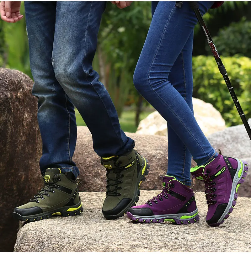 Уличные кроссовки, походная обувь, водонепроницаемые мужские и женские кожаные горные походные ботинки, пара зимних треккинговых кроссовок