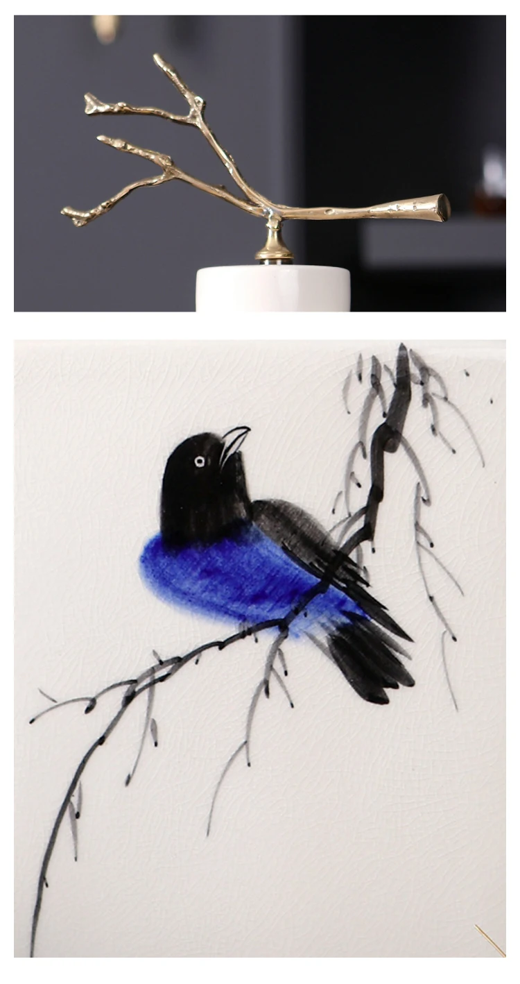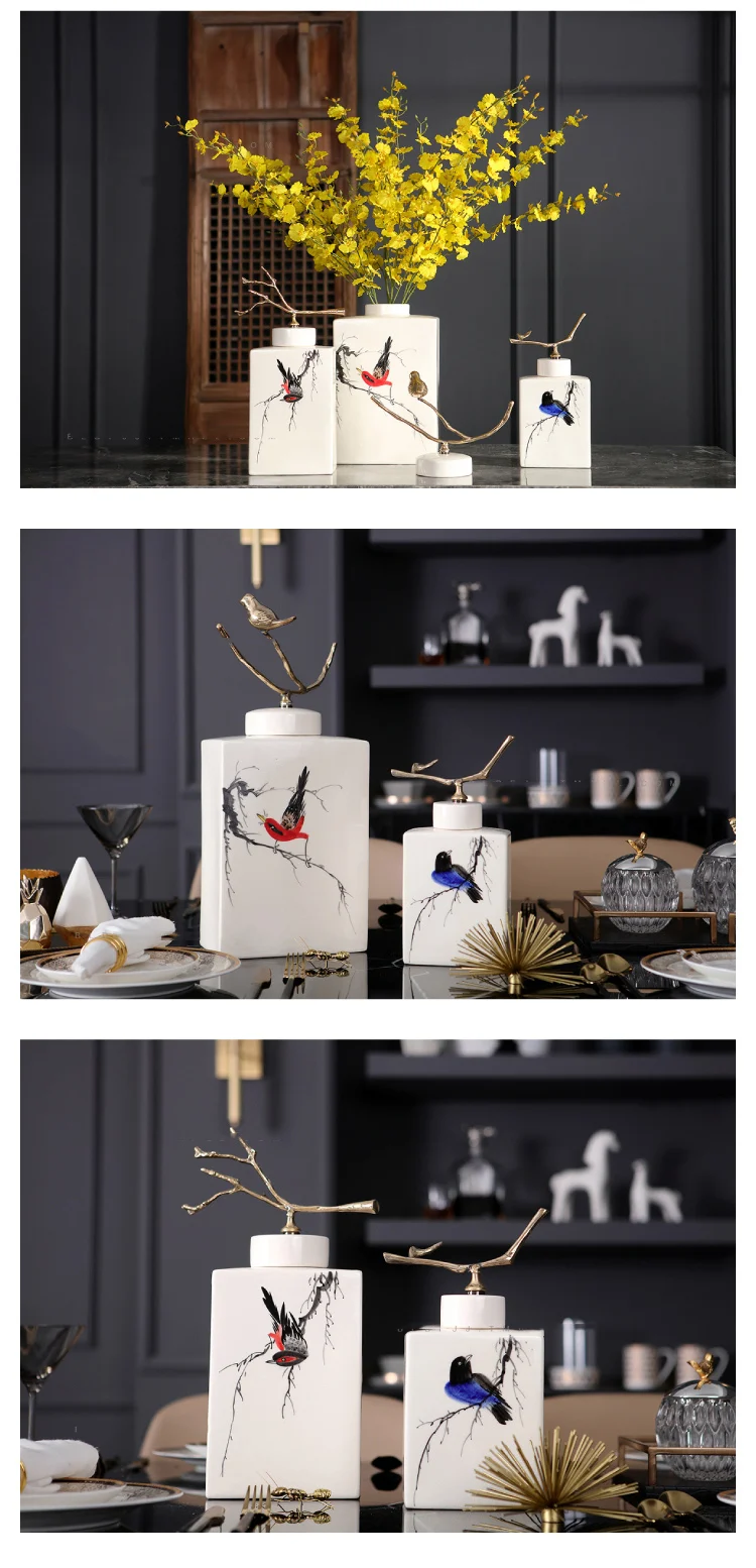 Китайская ваза для цветов, украшения, аксессуары для дома, керамическая ваза, ручная роспись, краска для птиц, керамический декоративный кувшин с крышкой