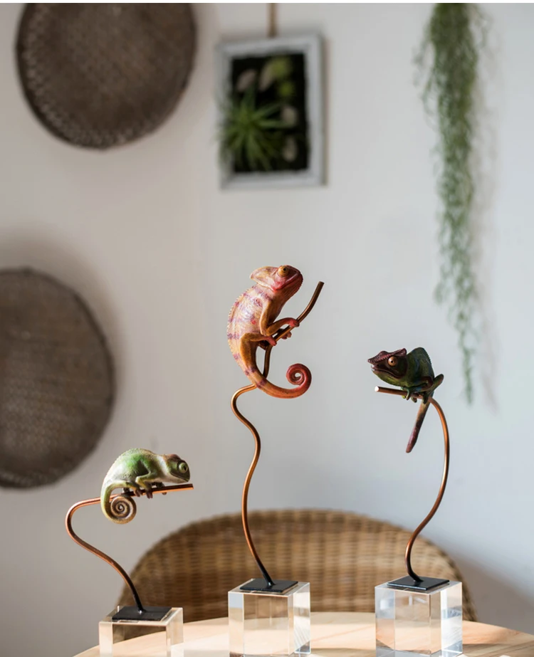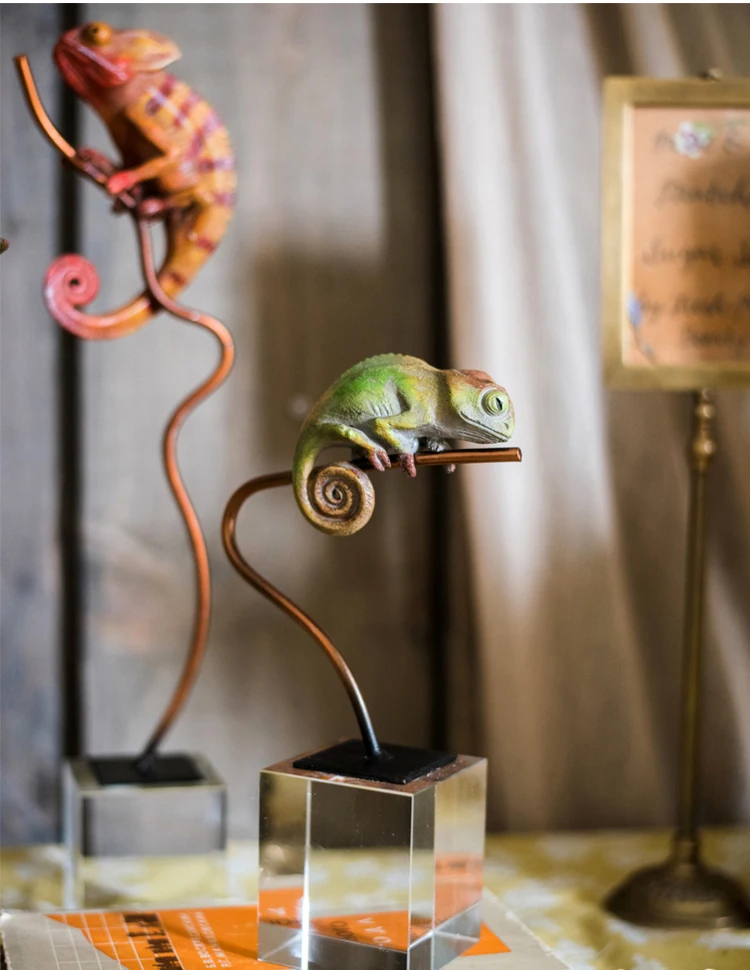 Альтернативное искусство Хамелеон скалолазание на металлическом столбе скульптура домашний Декор Аксессуары Статуэтка гостиная Хрустальное украшение подарки