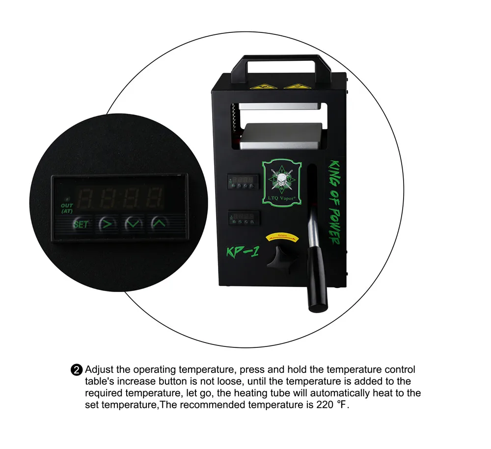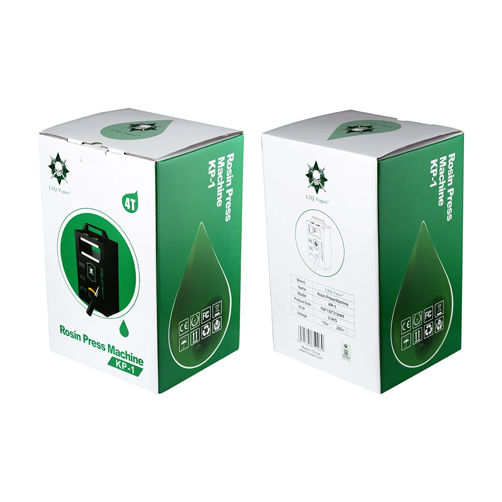 Информация о продукте LTQ Vapor канифоли пресс машина KP-1-это хорошо сделанный канифоли пресс машина для чистого масло для вейпа. Он имеет небольшой размер и высокое напряжение. С двумя нагревательными пластинами будет очень легче нажимать масло. Вам просто нужно обернуть тело цветка бумагой для выпечки и положить его в середину нагревательной пластины. Несколько раз нажмите на ручку, чтобы закрепить верхнюю и нижнюю нагревательные пластины на месте и остановить на 30 с, а затем дождитесь масла. LTQ Vapor Rosin пресс-машина KP-1 также может обеспечить функцию контроля температуры. Нагревательная трубка автоматически нагревается до заданной температуры. И Рекомендуемая температура составляет 220 ℉. Технические характеристики Размер: 195 мм x 130 мм x 312 мм Использование напряжения: 110 В,/220 В Мощность машины: 400 Вт Размер стола горячего прессования: 115 мм x 120 мм