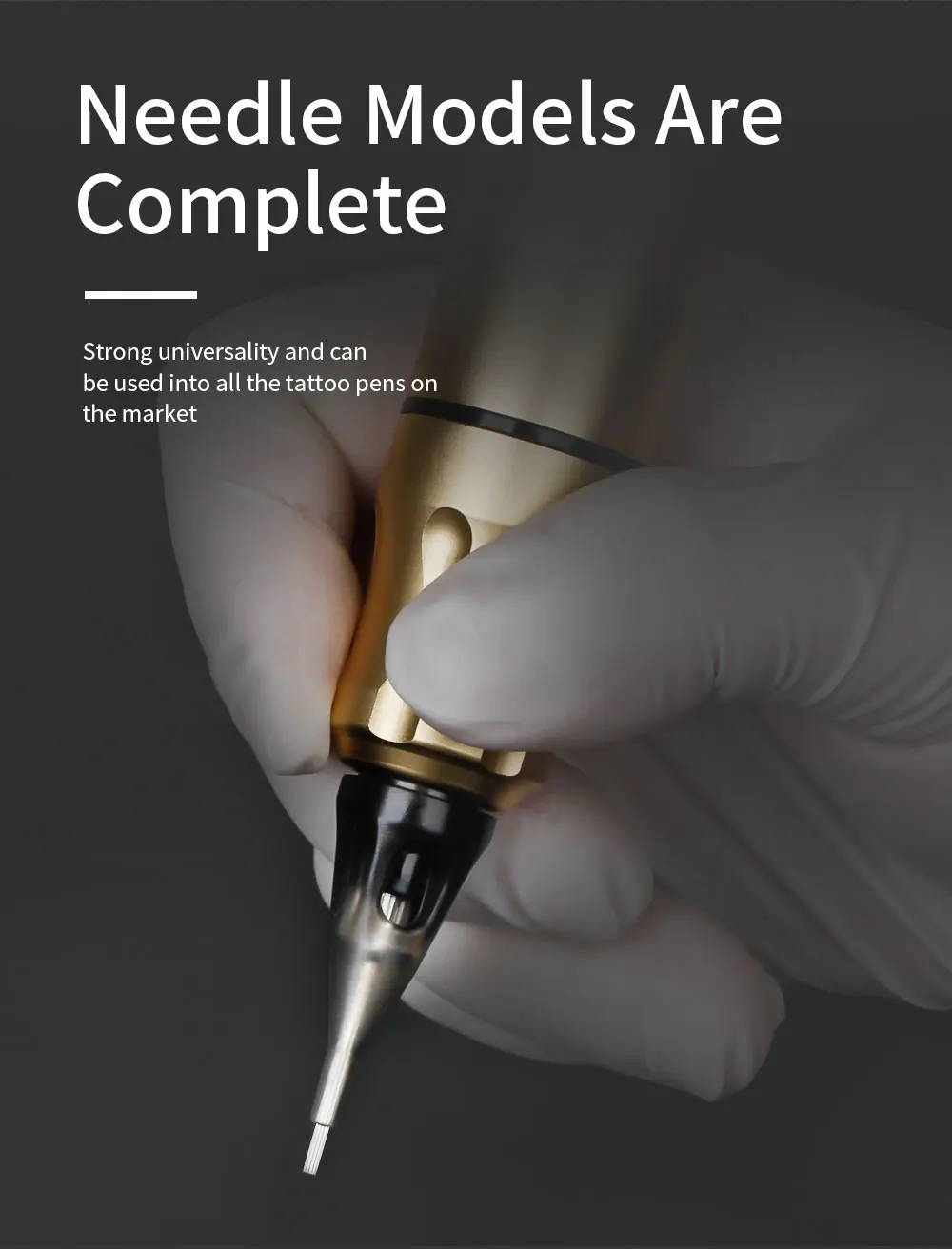 1. Игла для татуировки картриджа изготовлена из 316 медицинской нержавеющей стали и 100% стерилизована и упакована в блистерную упаковку. 2. Одноразовая профессиональная игла для татуировок картриджи с мембранной стерилизованной посылка, так что чернила татуировки не будут погружаться обратно в трубы. 3. Профессиональные иглы для татуировки безвредны, стерилизованы из нержавеющей стали для ежедневного использования. 4. Эти иглы картриджа совместимы с картриджными тату-машинами и захватами.