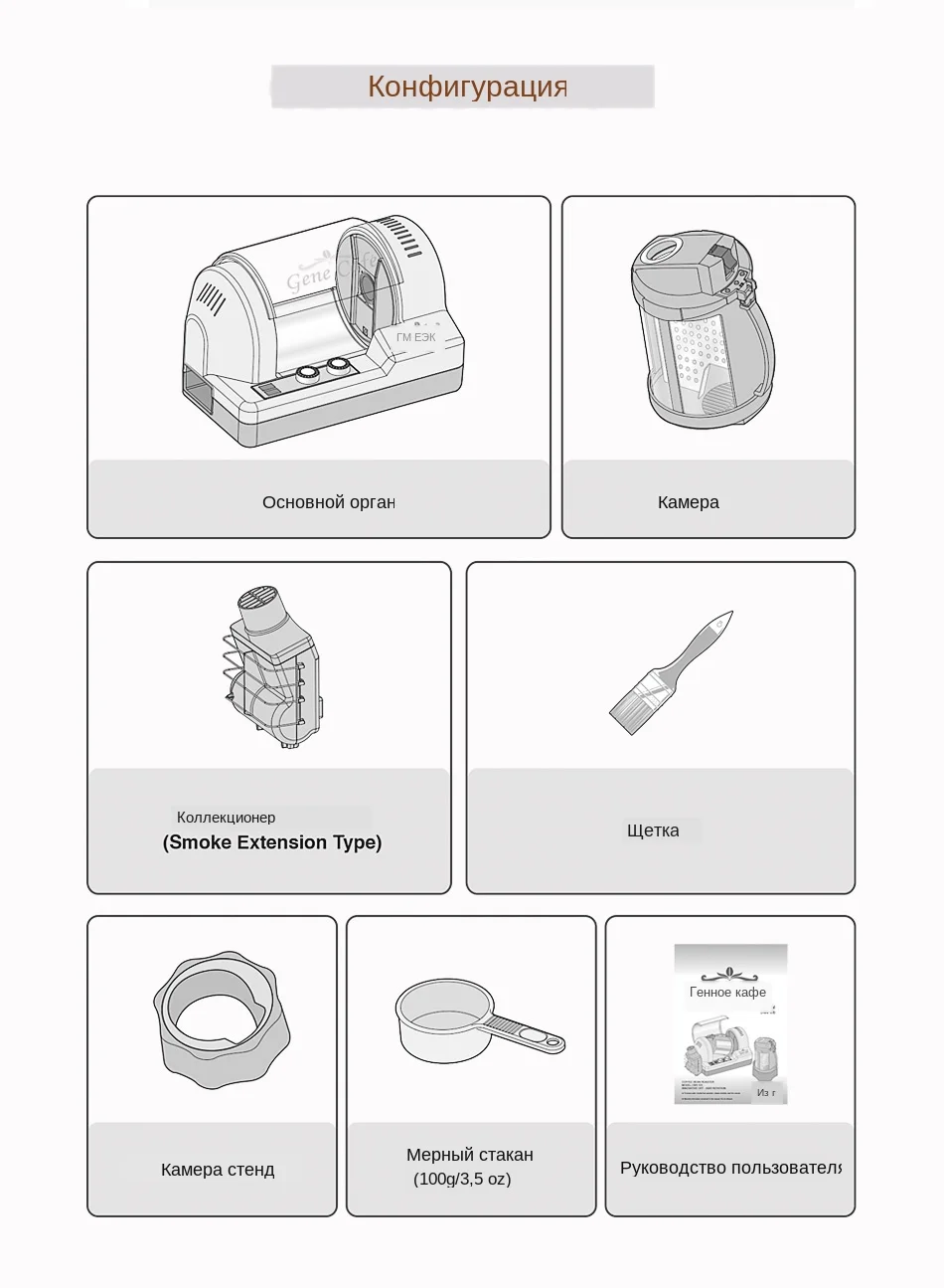 Съемная Камера: съемная обжарочная камера для наполнения, опорожнения и очистки Легко и удобно. Автоматический контроль температуры: упрощенный контроль температуры может помочь вам жарить кофе в Различные диапазоны стадий обжарки. Автоматический таймер: Простое управление временем с помощью кнопки набора. Защита от перегрева: датчики защиты от перегрева контролируют систему и Закрыть ее в чехол от перегрева. Высокоэффективный коллектор соломы: солома и выходящие газ распределяются вдали от Фасоль, как они жарят, прежде чем они могут дать Вкусом кофе. Приспособление для уборки собирается в съемный, легко чистится отсек. Инновационная 3D агитация: вращающаяся камера, разделенная по оси, обеспечивает эффективное и равномерное обжаривание. Патентом. Прозрачная обжарочная Камера: В отличие от некоторых жаровней, Gene cafet имеет четкий Камера для обжарки и защитная крышка, которые позволяют проверить процесс обжарки. Конвективный нагрев: Мощный конвекционный вентилятор быстро циркулирует нагретый воздух Через камеру. Для предотвращения паления бобы никогда не контактируют с источником тепла. Камера большой емкости: 3D agitation и convective heating позволяют генному кафе Жаркое до 250 фунтов (г). Автоматическая понижения температуры: Автоматическая понижения температуры цикла предотвращает остаточного тепла из-за обжарки овощей и фруктов. Гладкий дизайн в европейском стиле: чистые линии и маленькие линии жаровни Gene cafet Отпечаток ноги делает его желанным дополнением к кухонной стойке. Бесшумная работа: при использовании дома, она Бесшумная (65 дБ).