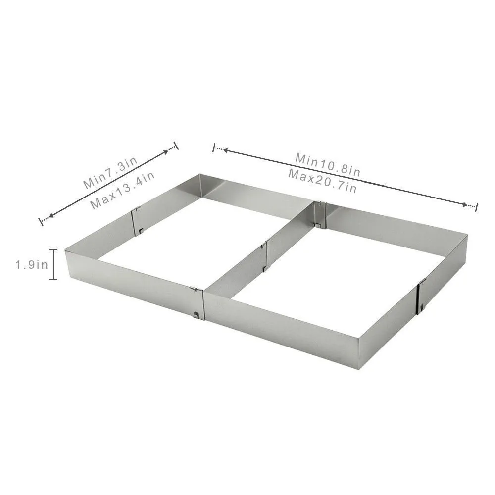 -Эту форму можно использовать для приготовления квадратных тортов, таких как мусс, Тирамису. -Эта квадратная форма для торта подходит для многих размеров, ее можно свободно регулировать как прямоугольную, так и квадратную. -Легко использовать и мыть, удобно и быстро. Край формы для торта гладкий и не повреждает руки. -Форма изготовлена из высококачественной нержавеющей стали, устойчива к высоким температурам и коррозии, прочная и многоразовая, не ржавеет.