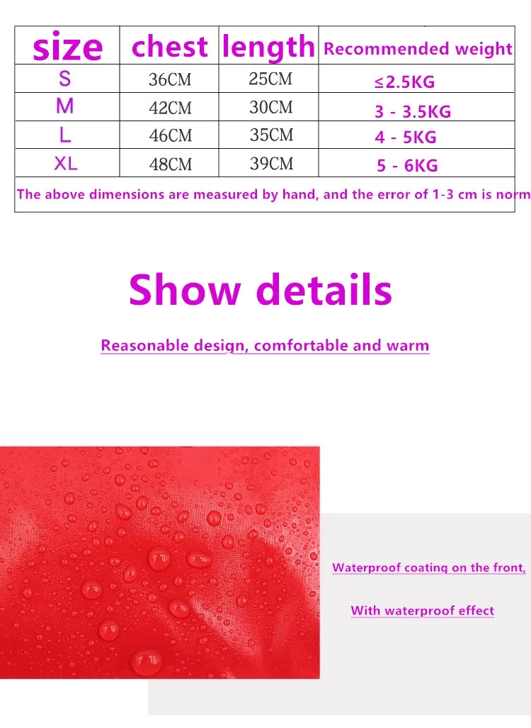 Комплектация: один предмет водонепроницаемой теплой одежды для домашних животных