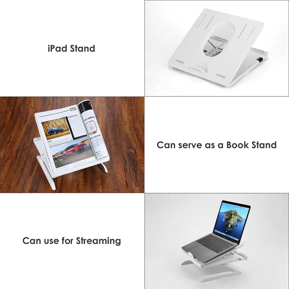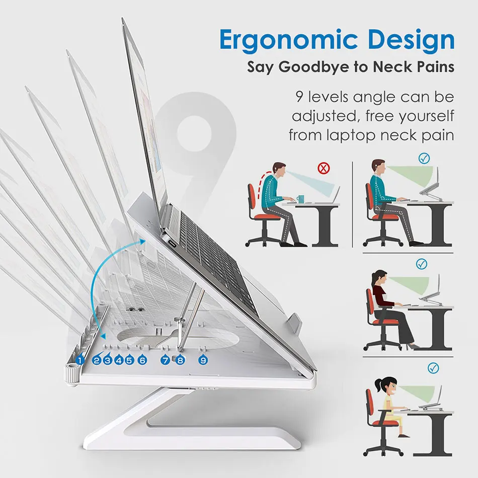 Это регулируемая, складная, Многофункциональная подставка для ноутбука, металлический + пластиковый материал, конструкция Z-type и нескользящая резиновая накладка делают подставку очень прочной, поддержка до 22 фунтов (10 кг), не беспокойтесь о каких-либо колебаниях, между тем, он может совместим с 12-17-дюймовым устройством, таким как MacBook, Air, Pro, Внешний ноутбук и так далее, вы можете использовать его в офисе, дома, конференц-зале, библиотеки, кафе, музыкальном домике... вдумчивый практичный подарок для ваших друзей и семьи, вашего рабочего ассистента.