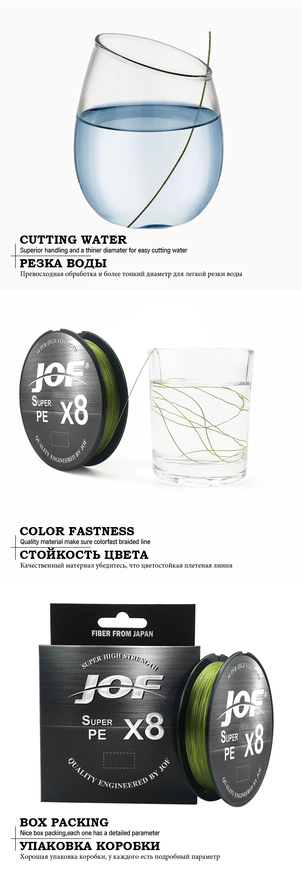 Особенности: JOF оплетка тоньше, прочнее, гладче, долговечнее чрезвычайно высокая прочность-на диаметр. Удивительная тонкая и чувствительная Высокая подхват округлости и прочности. Сопротивляется "копанию" на катушке. 1. Передовая широкоугольная технология-плавная суперлиния. 2, улучшенная Цветостойкость. 3, долгое и быстрое литье-более гладкое, чем когда-либо 4, супер чувствительность-мгновенное ощущение структуры и ударов 5, исключительная прочность и твердость 6, доступны высокие и низкие цвета Информация о товаре: Бренд: JOF Модель: 8 плетеных линий Метры: 300 м 500 м Форма: уровень Материал: плетеная проволока Плавучесть: плавающий 6 цветов: Hi-Vis зеленый, Low-Vis зеленый, Low-Vis серый, Hi-Vis Желтый, драгоценный камень синий, черный Номер строки: 0,8; 1,0; 2,0; 3,0; 4,0; 5,0; 6,0; 8,0; Параметры: Номер лески 0,8 #: 0,14 мм/15 фунтов/6,8 кг Номер лески 1,0 #: 0,16 мм/20 фунтов/9,1 кг Номер лески 2,0 #: 0,23 мм/30 фунтов/13,6 кг Номер лески 3,0 #: 0,28 мм/40 фунтов/18,2 кг Номер лески 4,0 #: 0,32 мм/50 фунтов/22,7 кг Номер лески 5,0 #: 0,37 мм/60 фунтов/28 кг Номер лески 6,0 #: 0,40 мм/80 фунтов/36,3 кг Номер лески 8,0 #: 0,50 мм/45,4 фунта/кг Комплектация: 1 шт. * леска Примечание: номер лески не является диаметром, пожалуйста, внимательно изучите таблицу и, пожалуйста, оставьте нам сообщение, если что-то не так, спасибо!