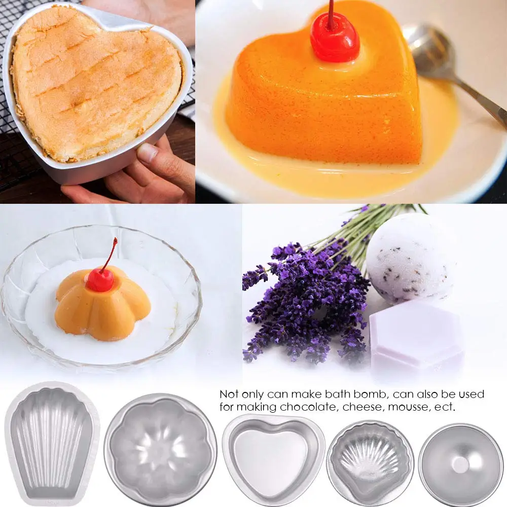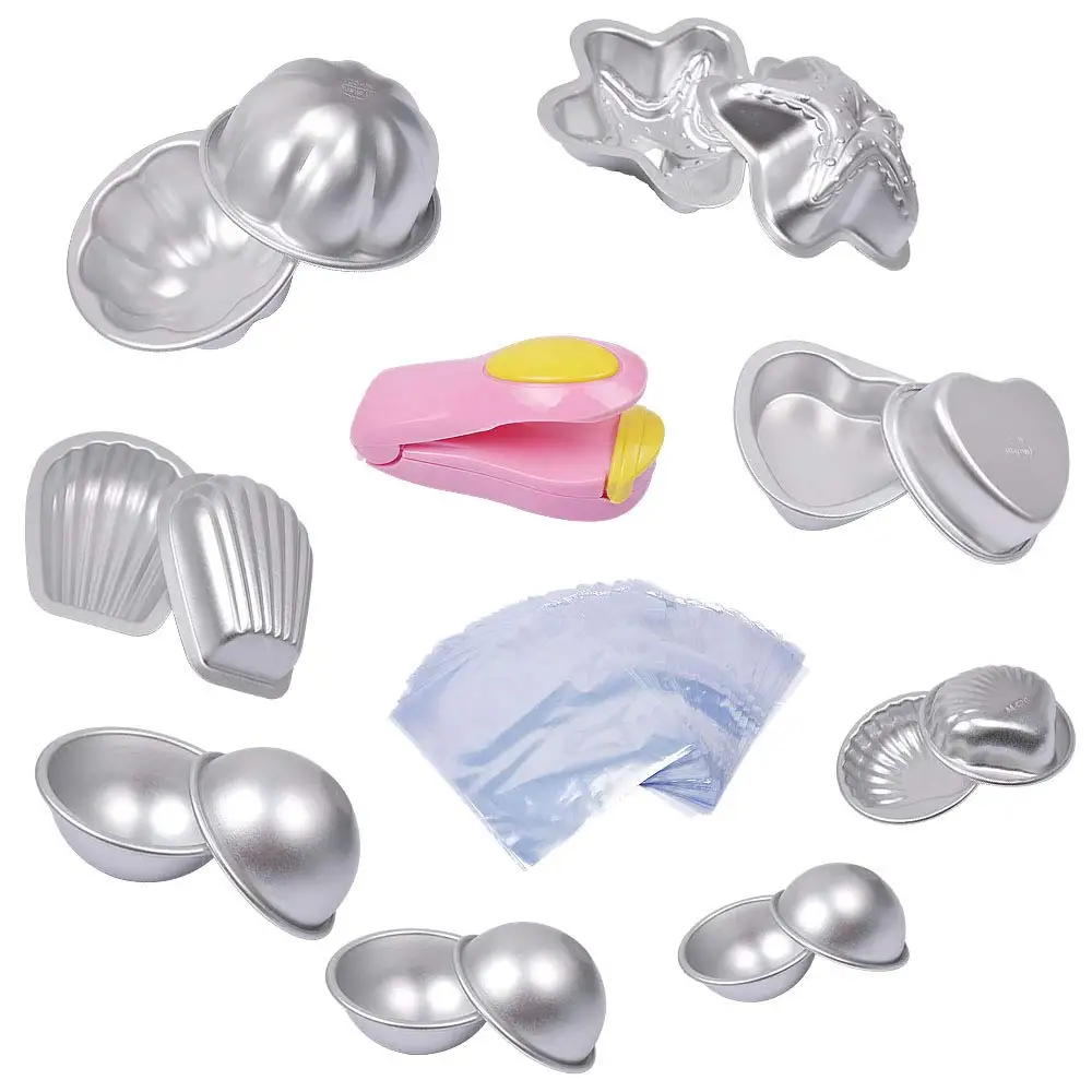 Различные формы-упаковка из 8 комплектов (16 штук) в одной посылка, это 6 полушарий, 2 сердца, 2 раковины, 2 гребешка, 2 морские звезды, 2 цветка и включает 200 термоусадочных пакетов и 1 мини-Термоупаковщик. Различные формы форм дают вам больше вариантов, чтобы сделать красивые бомб для ванны Высококачественное качество-Изготовлен из прочного алюминиевого металла, прочный и долговечный, вы можете повторно использовать их до тех пор, как вы хотели бы, безопасный и безвредный для нашего тела. Подходит для банных бомб-термоусадочные пакеты можно использовать для сокращения широкого спектра небольших продуктов до 6x6 дюймов, таких как банные бомбы и мыло. Термоусадочный мешок безопасен, нетоксичен, безвкусный Многократное использование-для приготовления мыла, шоколада, хлеба, пудинга, кубиков льда и т. д.