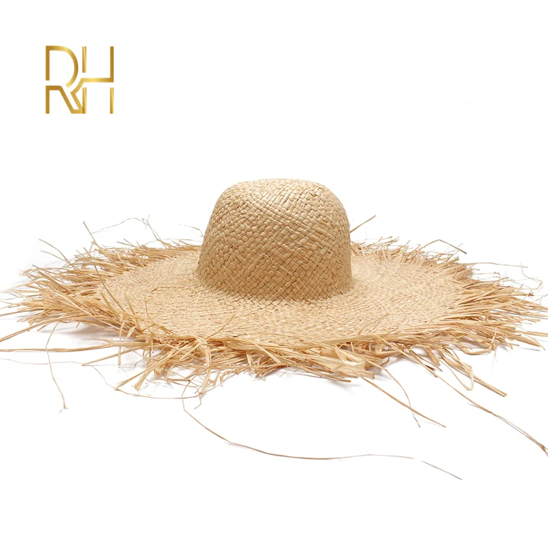 RH Natural Raffia Women Straw Sun Hats Large Wide Brim New Stylish Handmade Girls Beach Caps For Holiday