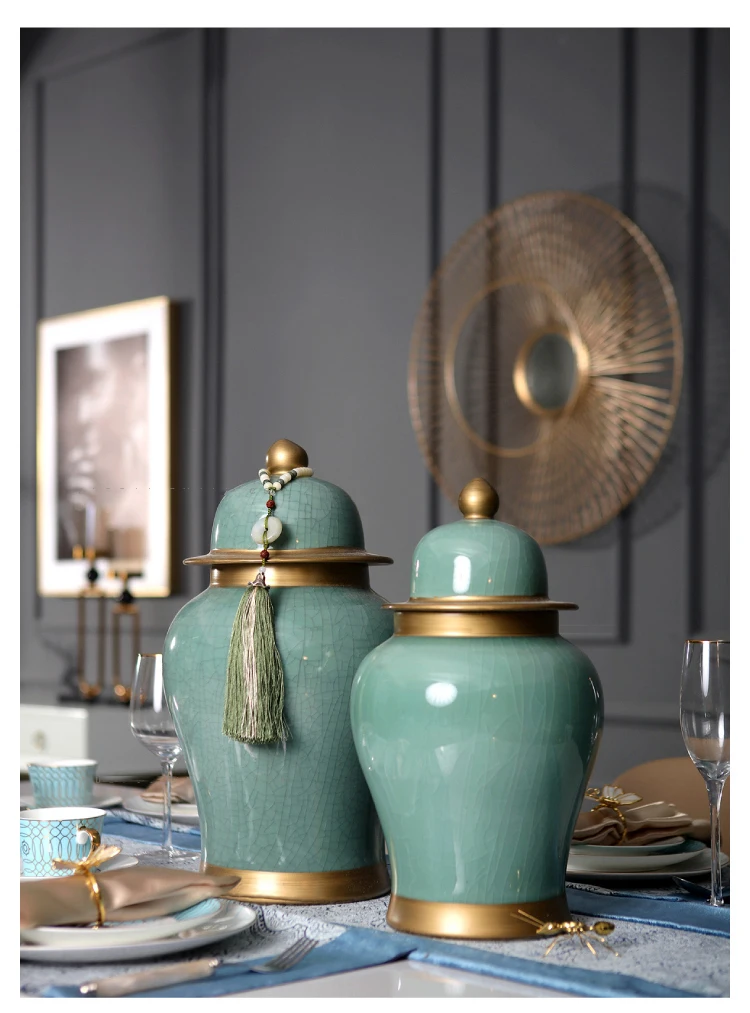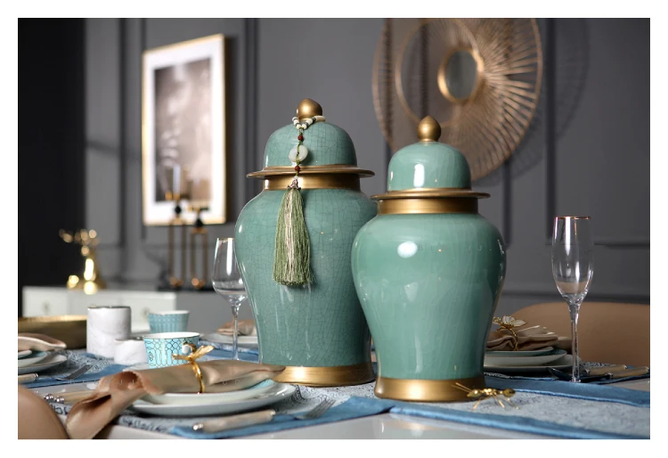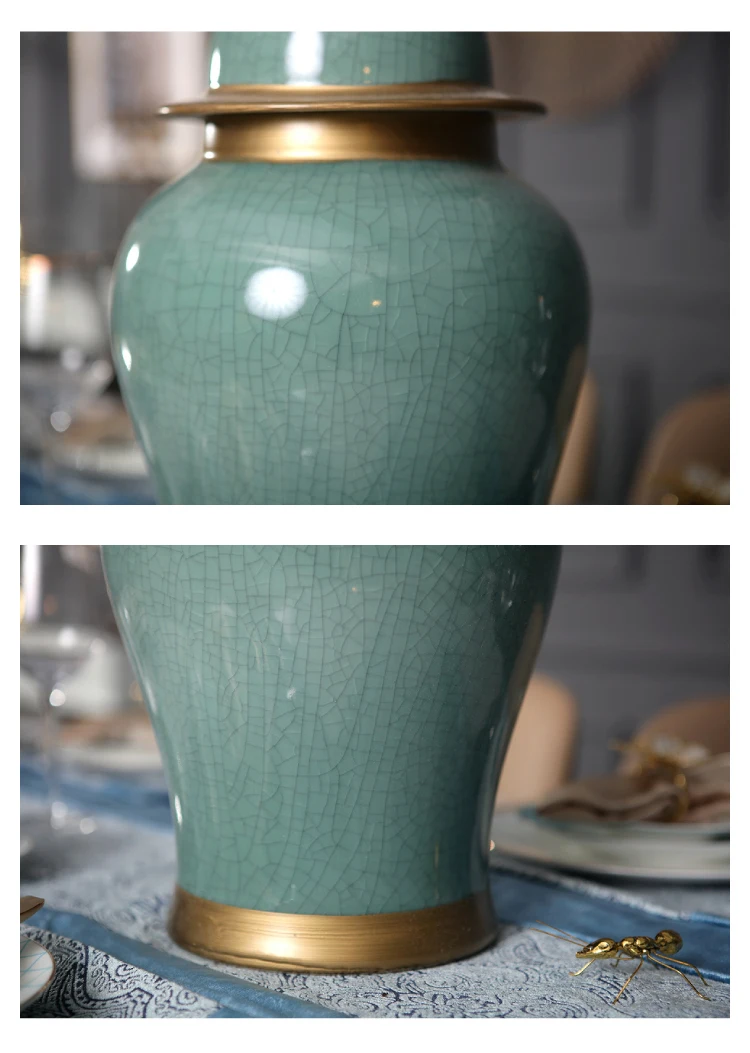 Китайский зеленый трещина Керамическая гостиная обеденный стол ваза украшение дома горшок бак для хранения современный дом отель Ремесло Украшение