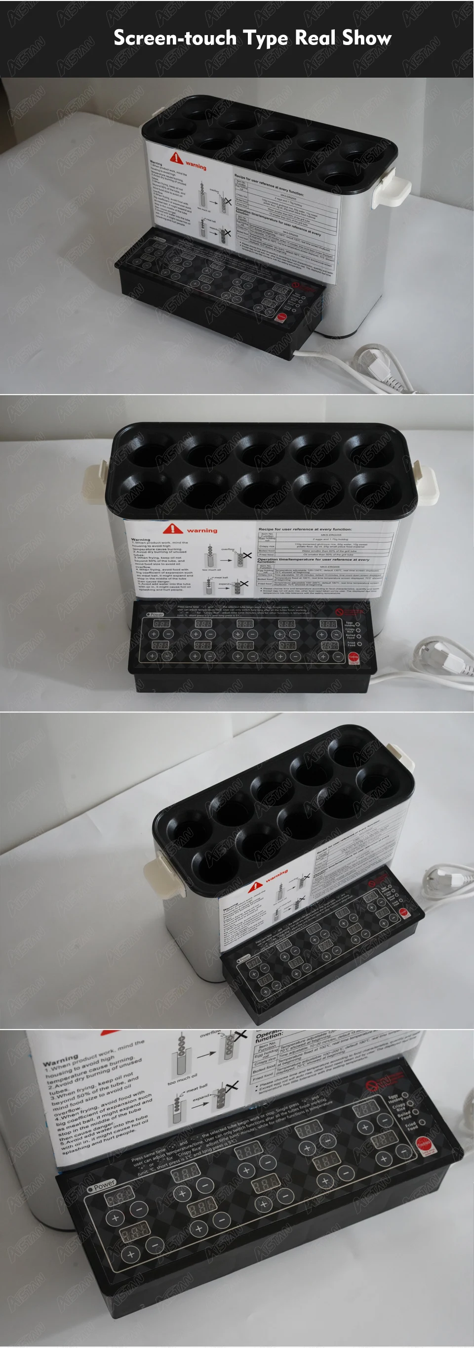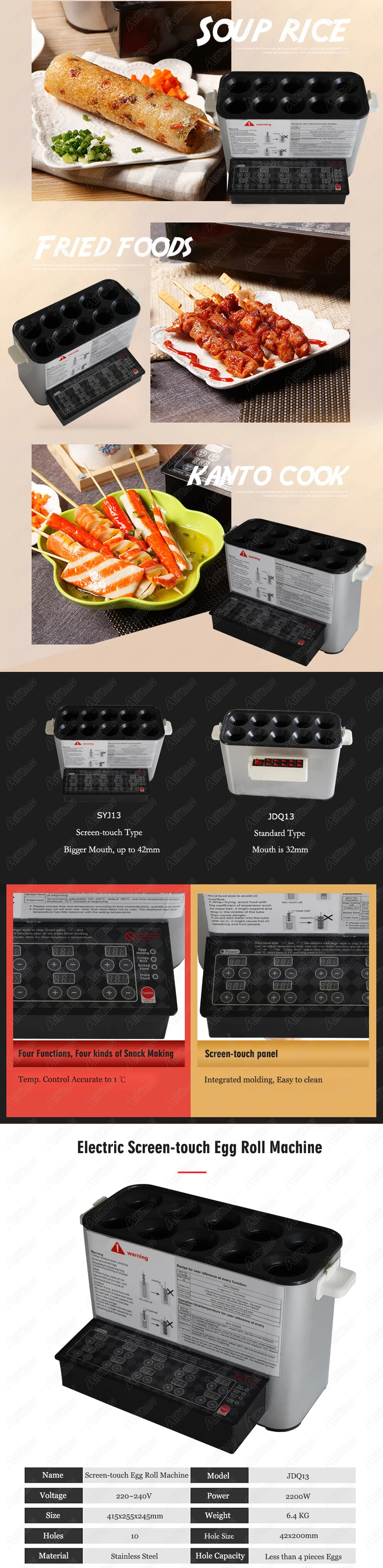 Электрическая машина для яиц с сенсорным экраном Размер: 415x255x245мм Мощность: 2200 Вт Отверстия: 10 Размер отверстия: 42x20 см
