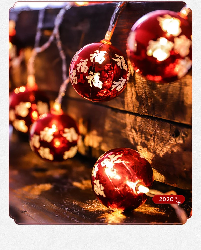 Fariry китайский красный шар фу слово батарея USB гирлянды светодиодный свет украшения для рождественской гирлянды на окно kerstverlichting