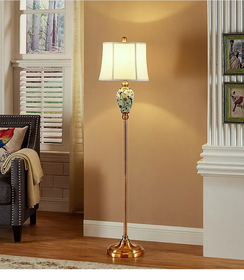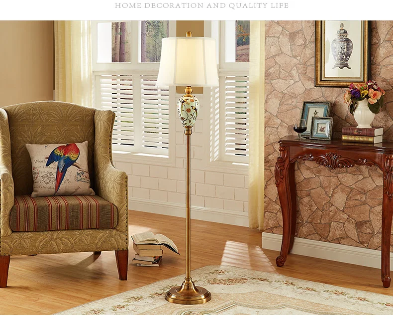 Керамическая напольная лампа ручной работы с изображением попугая, стоящая лампа для гостиной, фойе, рядом с лампой, фарфоровый напольный светильник, приспособление