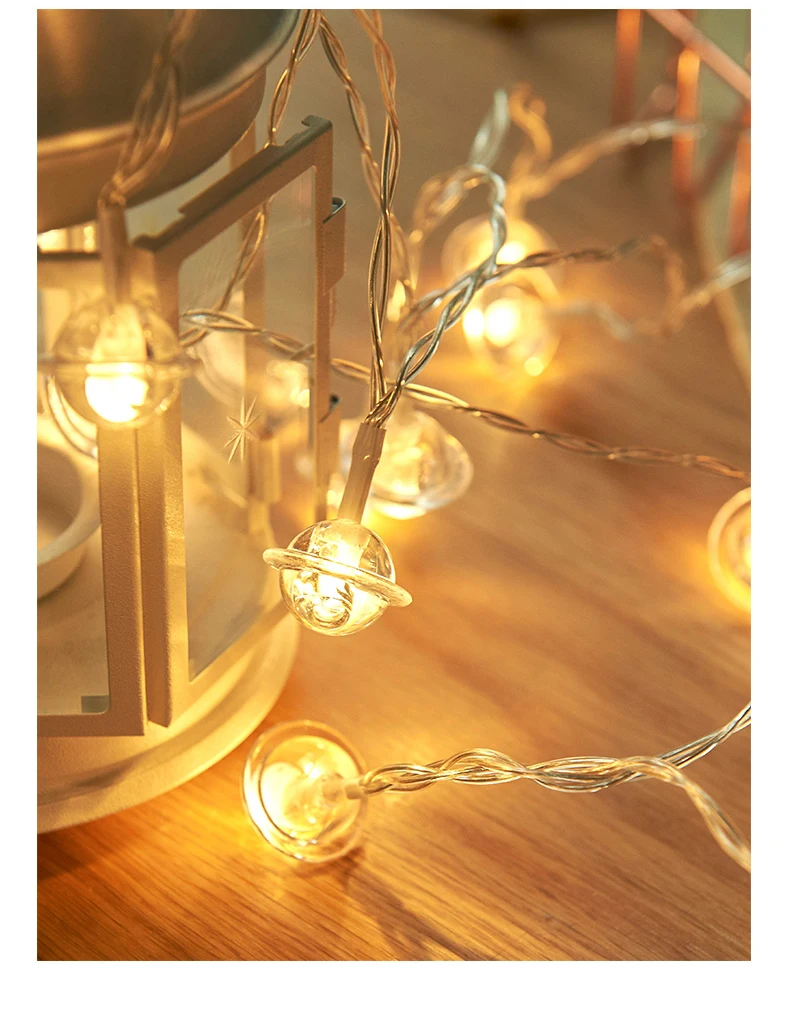 Светодиодный, сказочный, прозрачный, в форме планеты, батарея, USB, гирлянда, 6 м, светодиодный, декор для рождественской гирлянды на окно, kerstverlichting