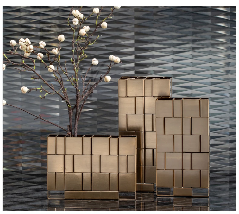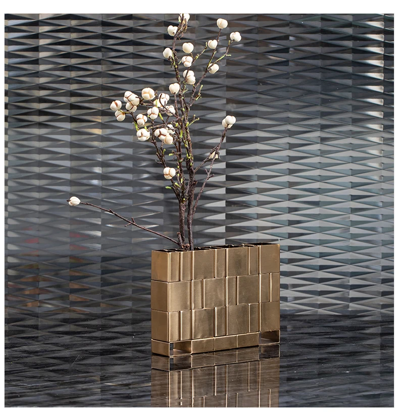 Роскошные несколько прямоугольных квадратов медные настольные вазы современные украшения Ремесло декоративная металлическая ваза для дома отеля рабочего стола