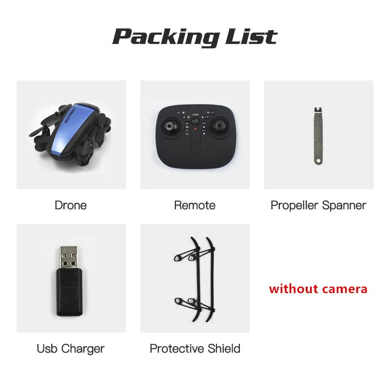 Бренд: GLOBAL DRONE RC: 2,4G Размер в открытом виде: 13,5*13,5*3,5 см RC диапазон: 100 м Сложите Размер: 5,5*7,5*3,2 Время полета: около 8 минут Батарея: 3,7 V 280 мАч Li ion аккумулятор • Время зарядки: 30 минут Кабель USB: 5В 1A посылка Вес: 0,35 кг Датчик давления: установка высоты Посылка: с оригинальной коробкой (без камеры)