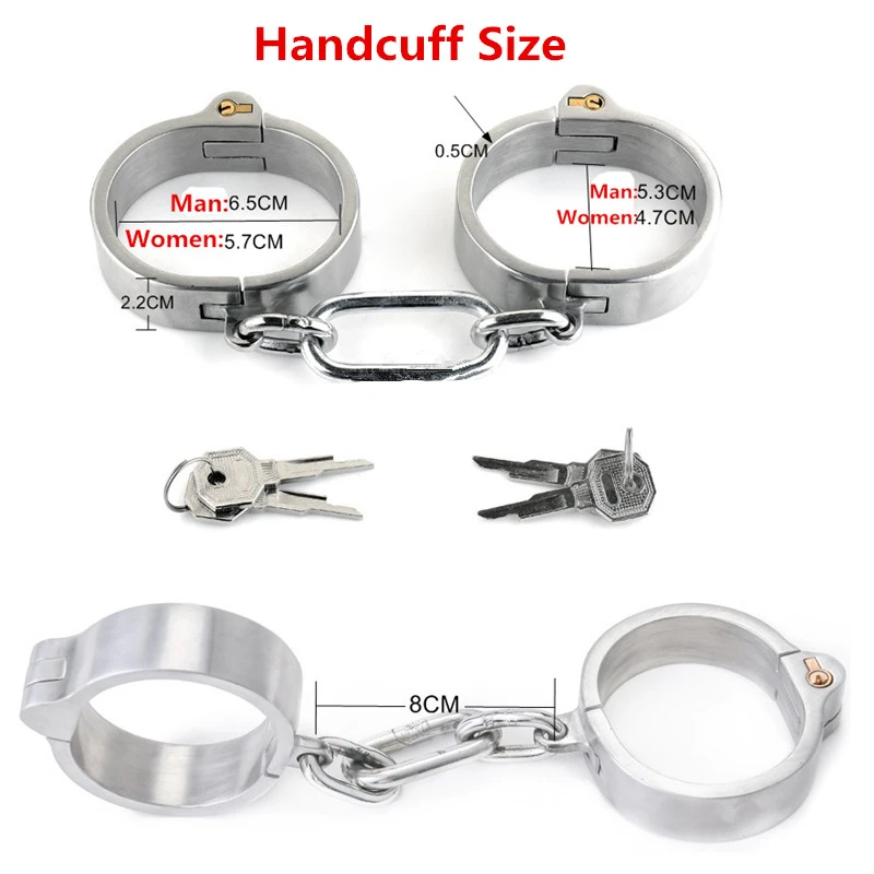 Male: collar inner diameter 13.5cm, handcuffs 6.5*5.2cm, legcuffs 8.7*7.2cm, high 2.2cm