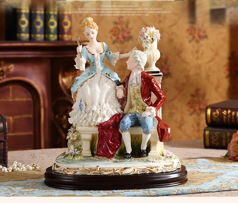 Home Decoration Accessories Men And Women Sit On A Roman Column Fishing Decor Figurine Office Ornament Objects Ceramic Gift