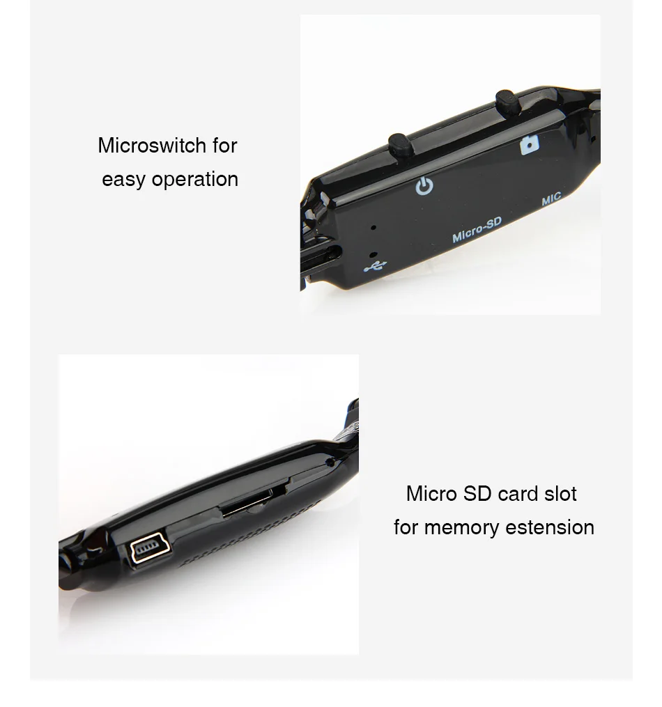 Многофункциональность: ПК камера/солнцезащитные очки 1.3MP камера Микропереключатель для легкой эксплуатации Слот карты Micro SD для легкого расширения памяти