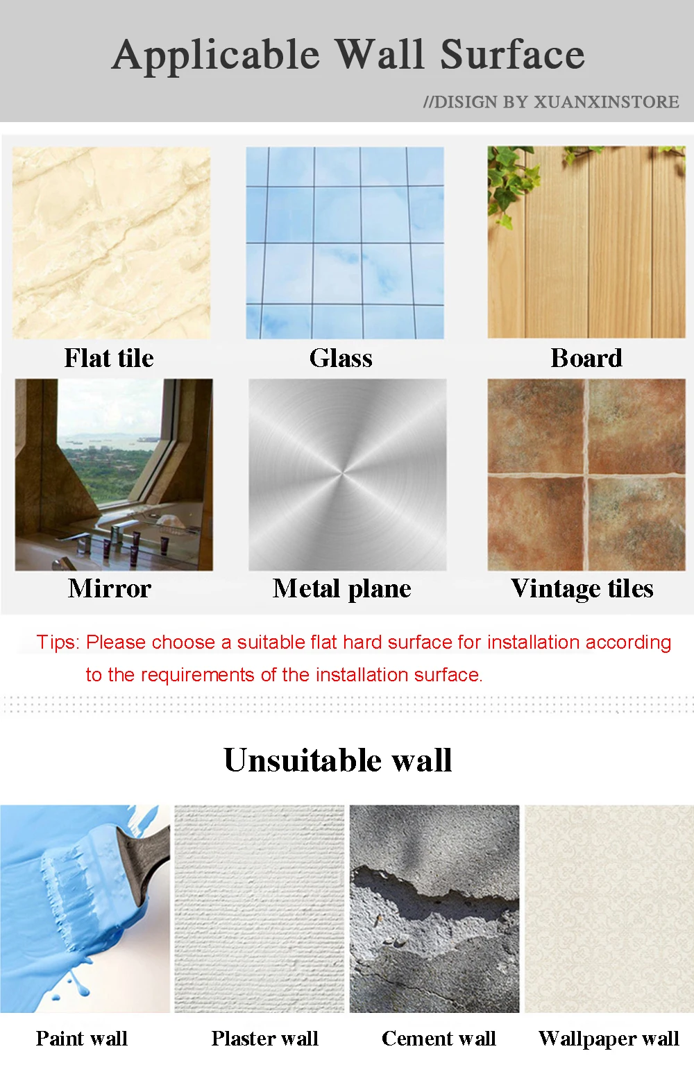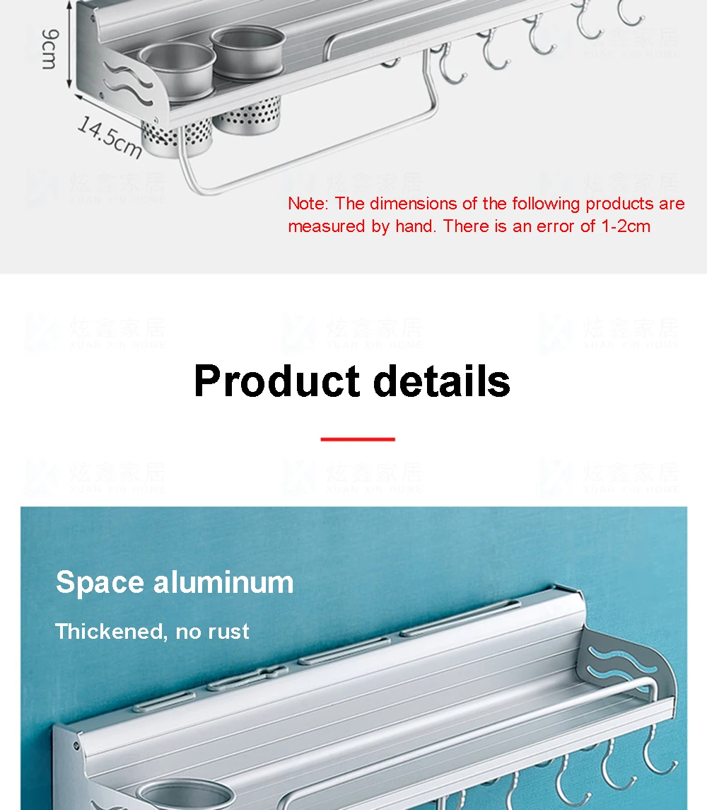 1. Clean the wall. 2. Use drilling tools to drill holes. 3. Put in the rubber plug, tighten with screws, and fix the shelf on the wall. Tips: Tips:Please choose a suitable flat hard surface for installation according to the requirements of the installation surface.The dimensions of the following products are all manually measured. There is an error of 1-2cm. Please refer to the actual product. Thank you.
