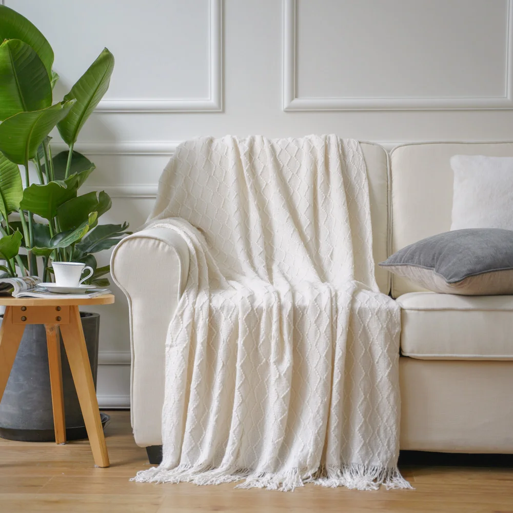 Простой, но утонченный трикотажный узор отлично смотрится на диване или стуле, придает цвет гостиной, спальне или ложе.