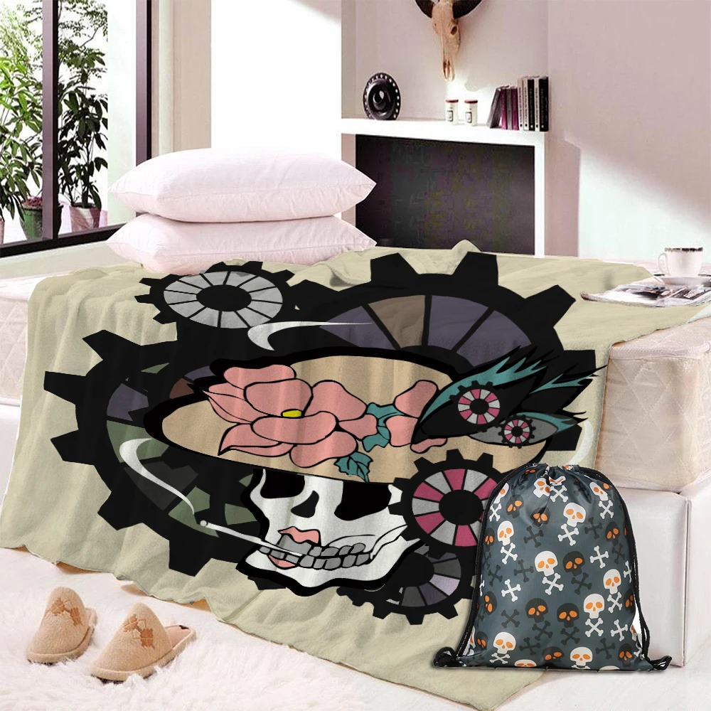 Сахарное одеяло с черепом, розами, микрофибра, шерпа, диван, одеяло с цветочным принтом, красное, готическое, постельные принадлежности, Mantas Para Cama