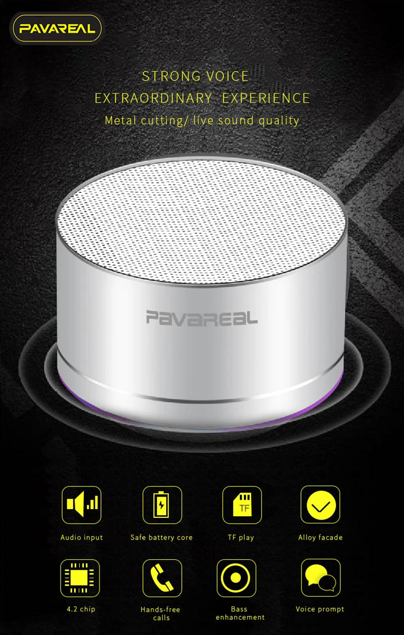 Мини bluetooth-колонки Портативные bluetooth-колонки Аудио вход Безопасный сердечник батареи TF карта play Сплав фасада 4,2 чип Беспроводные звонки Усиление басов Голосовая подсказка
