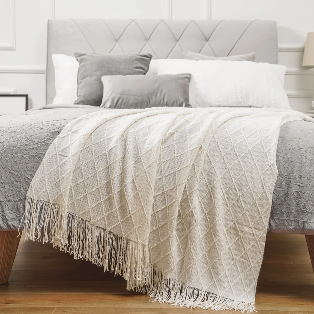 Классический популярный, самый продаваемый стиль! Шикарный, красивый трикотажный дизайн с алмазными узорами из супер мягкого полиэфира из микрофибры для плюша, текстурированного вида и ощущения. Дизайн отделан очаровательными кисточками по бокам ширины.