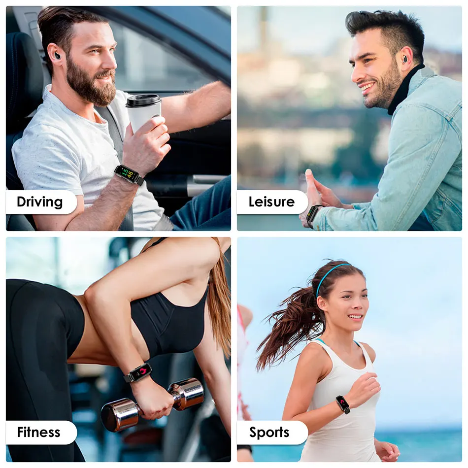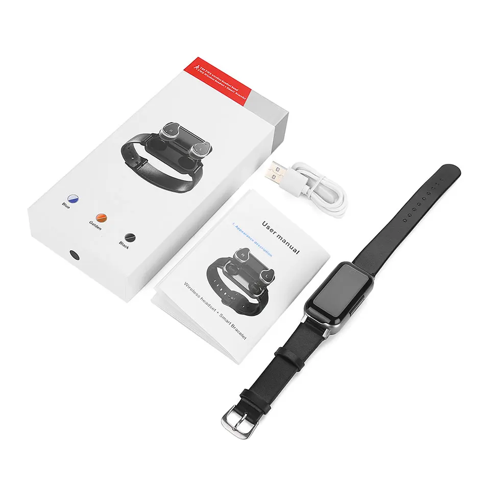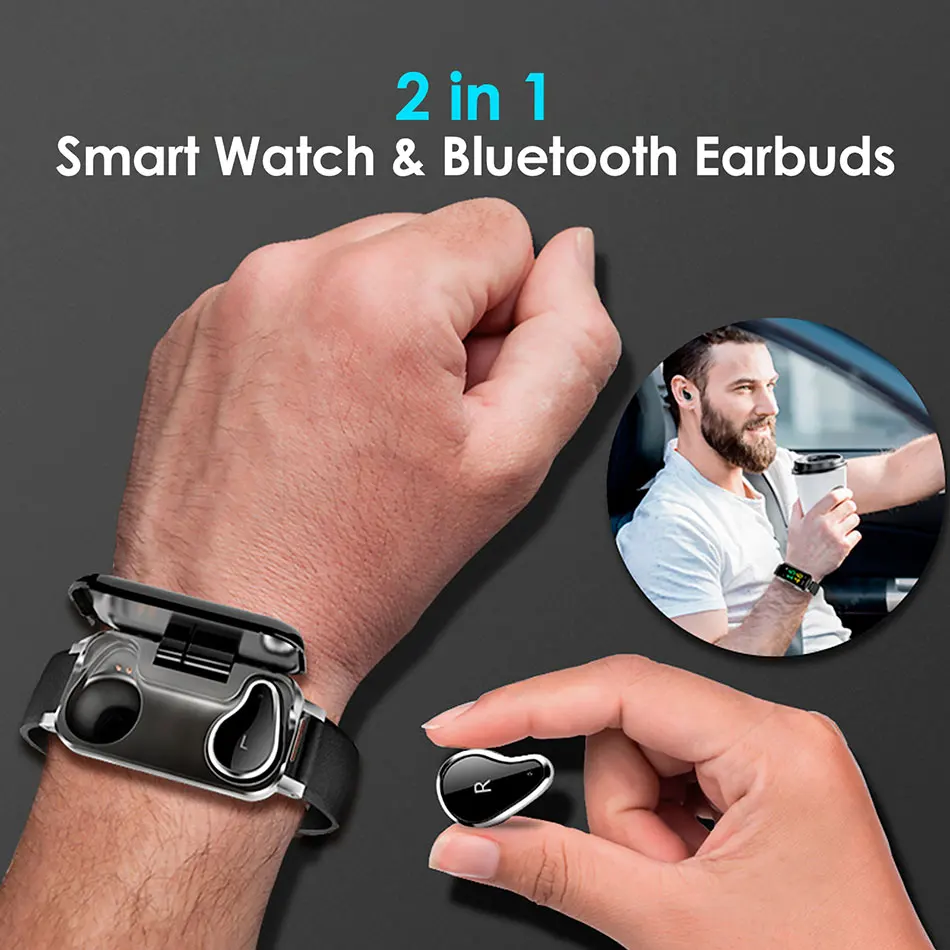 【 2 в 1 умные часы с Bluetooth головным убором TWS • Одно устройство, две функции, водонепроницаемый IP67, Магнитная Зарядка, умные часы AI и bluetooth-гарнитура TWS, новый опыт настоящих умных Носимых устройств 【Многофункциональный умный Браслет 】 • Шагомер, расстояние, режим мульти-спорта, калории, мониторинг сердечного ритма, мониторинг артериального давления, мониторинг качества сна, прослушивание музыки, напоминание о смарт-телефоне, удаленная камера и т. д. 【TWS Bluetooth Головной убор 】 • Встроенный чип Bluetooth 5,0, автоматическое включение, HIFI-уровень высокого качества звука, сенсорное управление, звук 6D, компактный мини, bluetooth-гарнитура TWS эргономичный дизайн, И он не будет чувствовать боль в ушах, даже если носить в течение длительного времени. 【Сохраняйте здоровье 】 • Умные часы 2 в 1 могут динамически контролировать частоту сердечных сокращений 24 часа в сутки, чтобы поддерживать ваше физическое и умственное здоровье. Вы можете использовать этот умный браслет в любое время, в любом месте в офисе, дома и в дороге. Очень подходит на Рождество и день рождения, подарок на День Благодарения 【Проблемы • Высококачественная кожа, изысканный внешний вид, многофункциональный смарт-браслет, если у вас есть какие-либо вопросы о продукте, пожалуйста, свяжитесь с нами