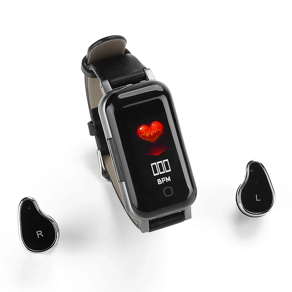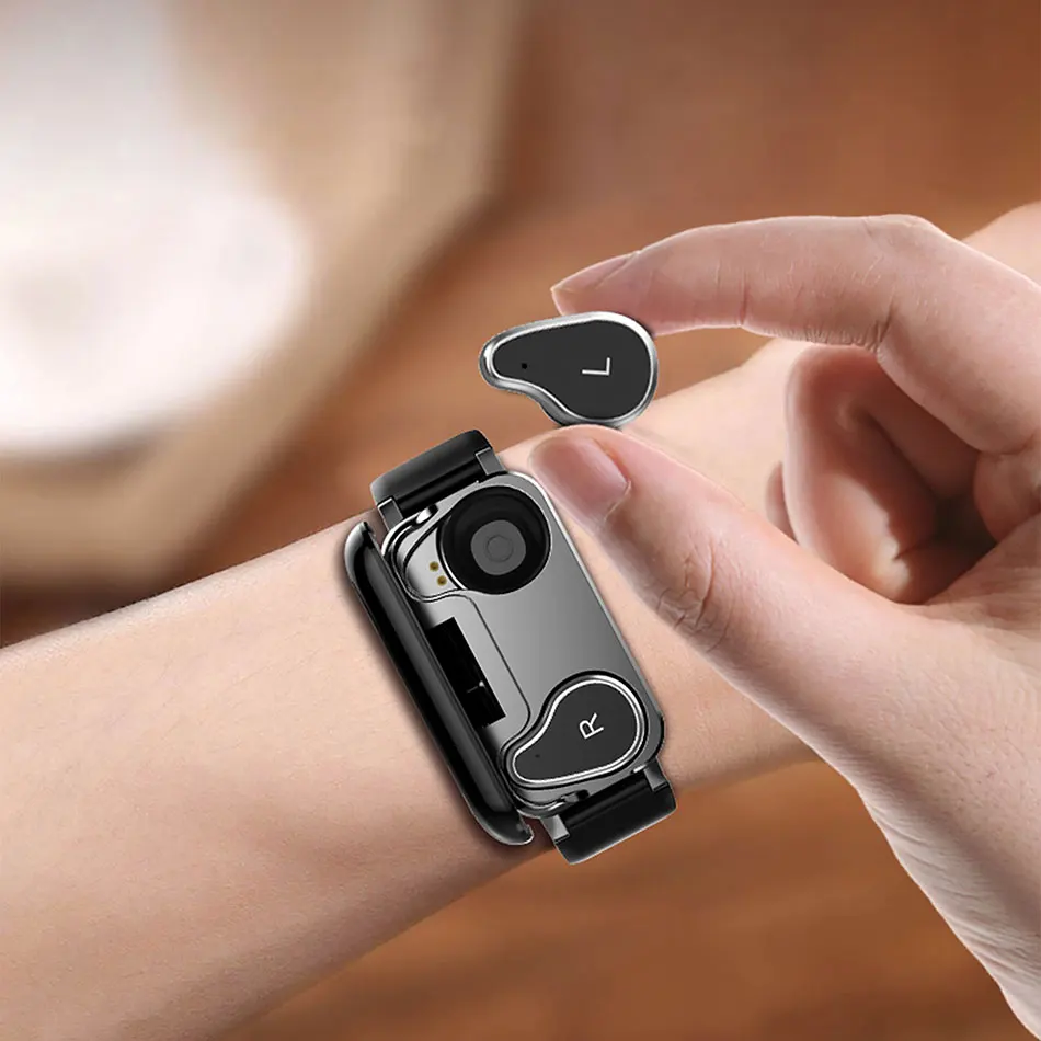 • 2 в 1 Смарт-браслет-Новый Умный носимый опыт: TWS bluetooth-гарнитура и смарт-часы, одно устройство с двумя функциями. • Он поддерживает несколько функций: шагомер, расстояние, мультиспортивный режим, калории, мониторинг сердечного ритма, мониторинг артериального давления, мониторинг качества сна, прослушивание музыки, напоминание о смарт-телефоне, удаленная камера, И т. Д., сохраняя ваше здоровье.