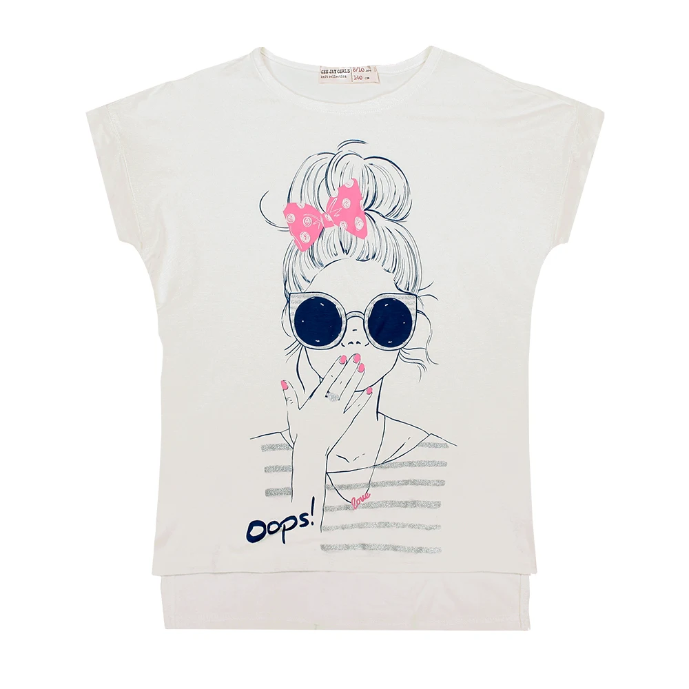 Футболка свободного кроя, украшенная ярким рисунком, – незаменимый элемент повседневного гардероба девочки. Модель не стесняет движений, что позволяет с комфортом проводить время за активными играми, на спортивных занятиях или на прогулке. Удлиненная спинка модели обеспечивает комфорт. Особенностью является крупный принт, привлекающий внимание и создающий современный образ. Базовый цвет футболки позволяет гармонично сочетать ее с потертыми джинсами, кроссовками и сумочкой на тонком ремешке.
