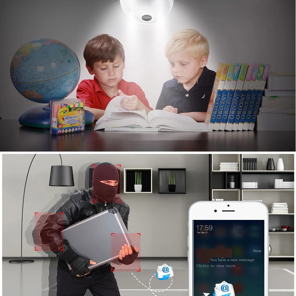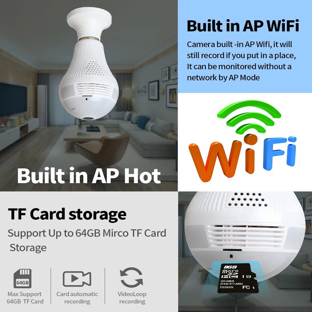 Может работать через светильник WIFI камера приложение после подключения