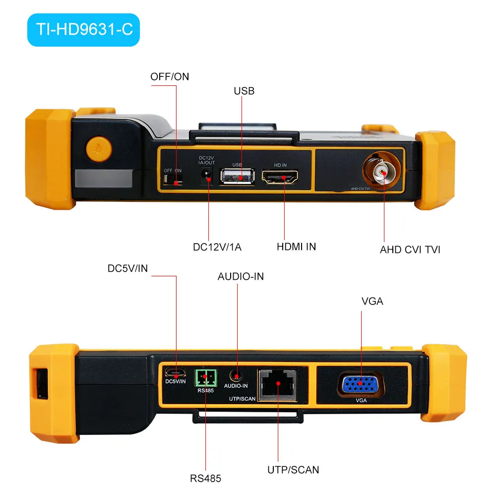 TI-HD9632S-C = 5 дюймов + 8 Мп AHD + CVI + TVI + HDMI + VGA + 8 Мп SDI + CCTV тестер