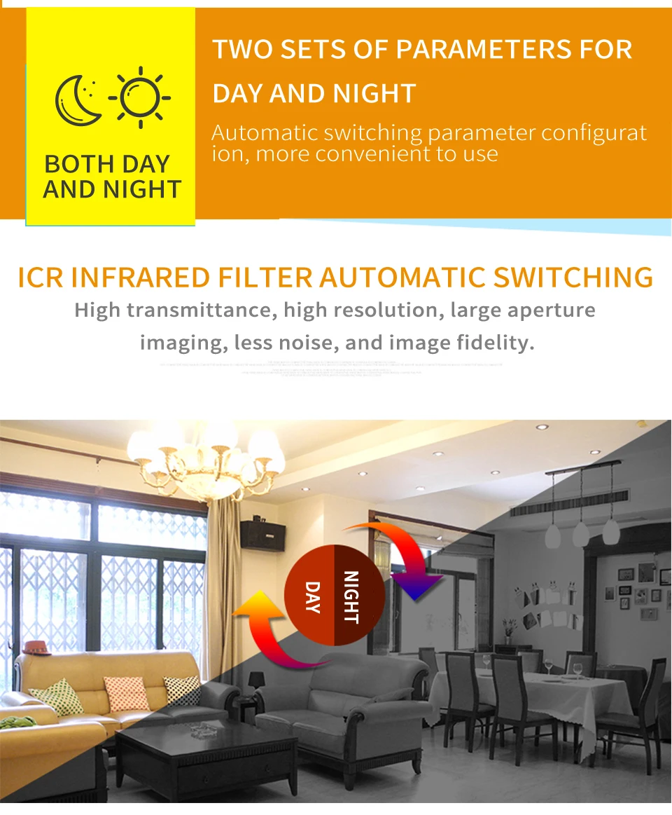 IP Камера поставляется с инфракрасным светодиодный со фильтр, отсекающий ИК-спектр, и обеспечивает четкие ночные снимки.