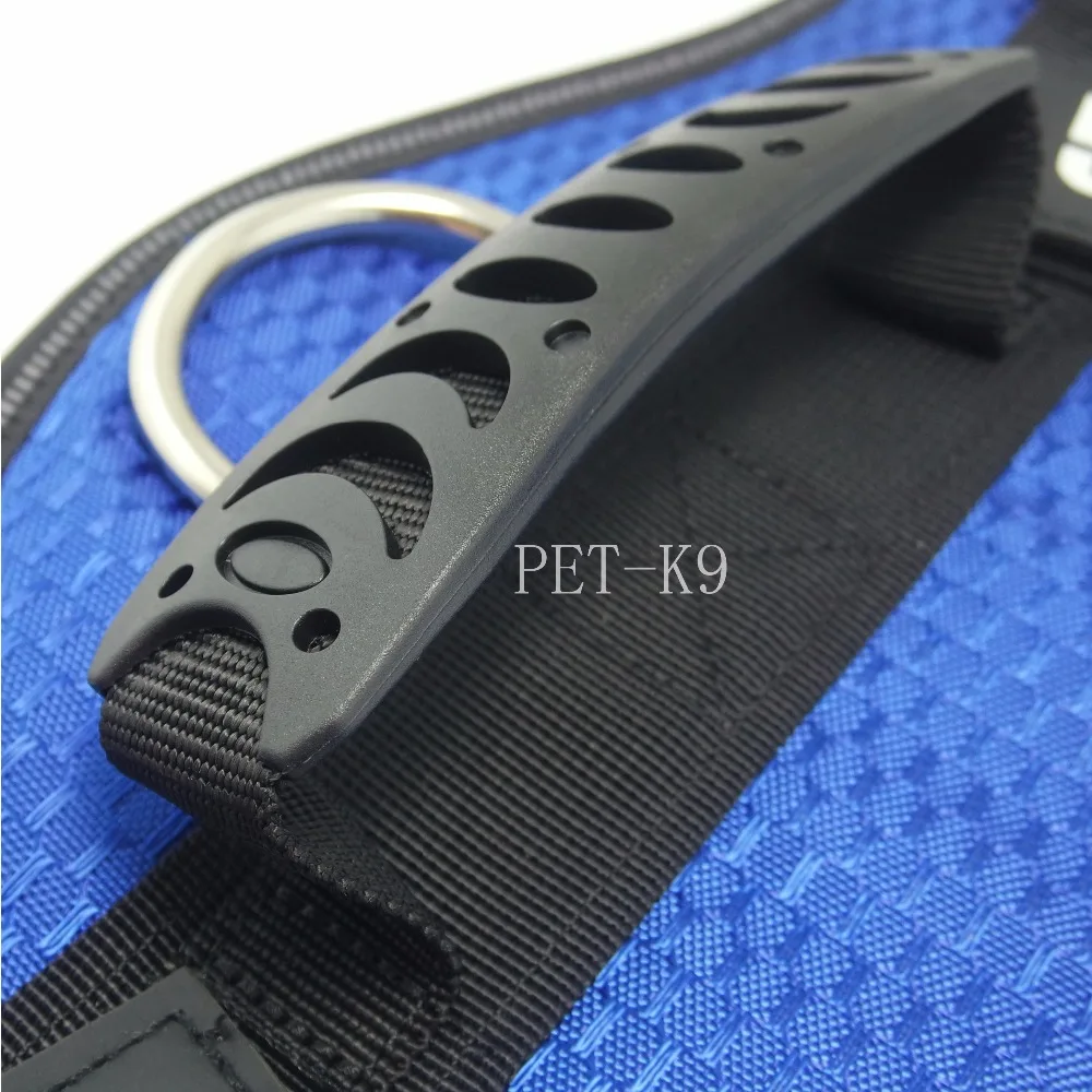 Все ремни регулируются. Встроенная ручка сверху для управления и обучения. D-кольцо из нержавеющей стали для Leashes и ID-тегов.