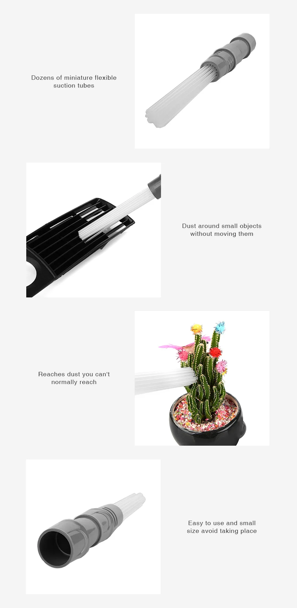 Многофункциональная щетка для папы пылиПоставляется с десятками гибких, крошечных всасывающих трубок, которые могут идти практически в любом месте от пыли. Гибкая конструкция трубок поможет вам запылить крошечные предметы, не снимая их в первую очередь. Избавьтесь от пыли, до которой Вы не могли добраться, отлично подходит для вентиляционных отверстий, клавиатуры, ящиков, жалюзи, мебели, автомобилей и многого другого.Многофункциональная щетка для папы пылиЛучший инструмент для очистки.