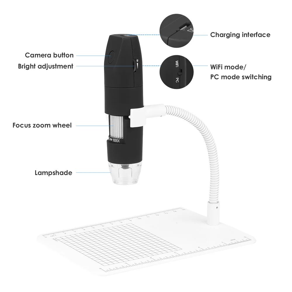 Это портативный Wi-Fi электронный микроскоп, оснащенный точкой доступа Wi-Fi, которая может подключаться к телефонам и планшетам с системой iOS/Android. В то же время микроскоп также поддерживает usb-интерфейс для подключения к компьютеру. чем больше экран, тем лучше дисплей и тем резче качество изображения. В то же время изделие поддерживает хранение фото, видео и файлов. отличный подарок для детей, любителей и профессионалов!