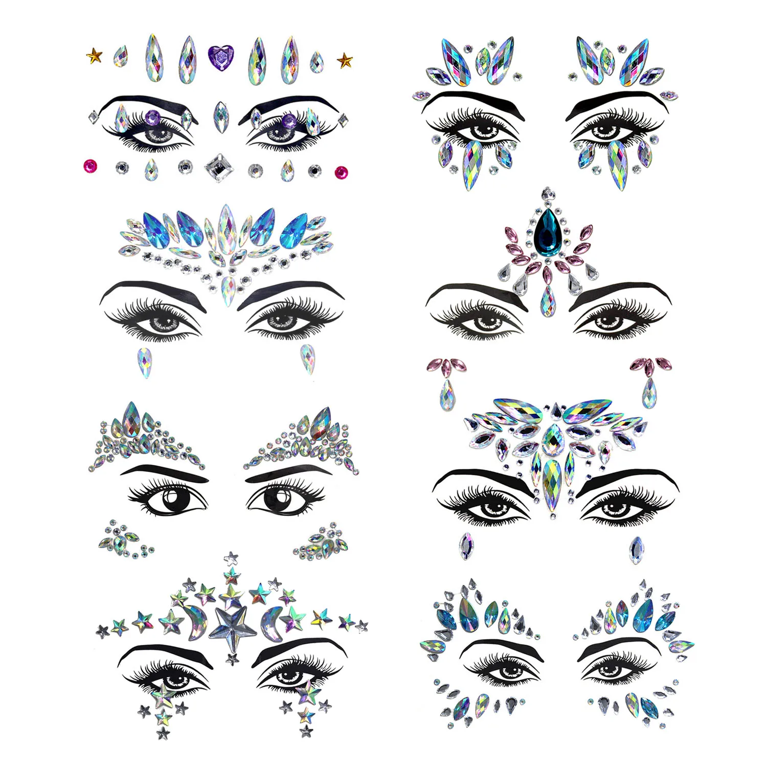 Кристаллы для лица с великолепным дизайном, эти потрясающие наклейки для лица украсят ваш макияж и сделают вас центром внимания толпы