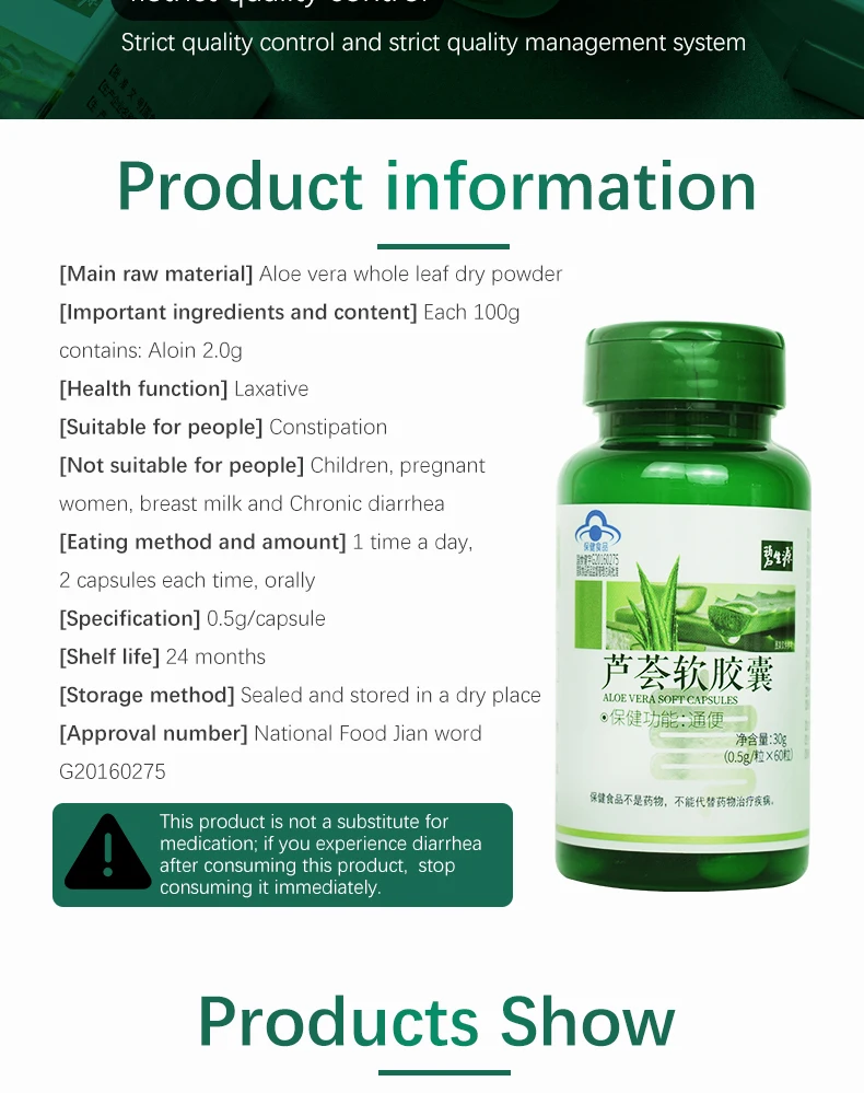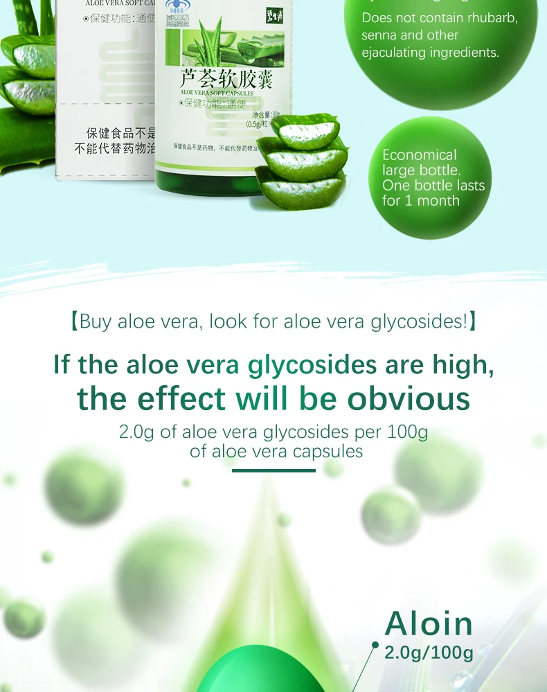 1. Мягкая капсула алоэ: 60 мягких гелей 2. Эффективный Ингредиент: на 100 г включает в себя алоин 2 г