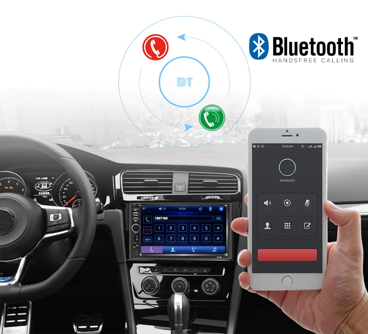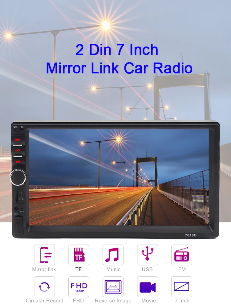 2 Din 7 дюймовое зеркало с сенсорным экраном: