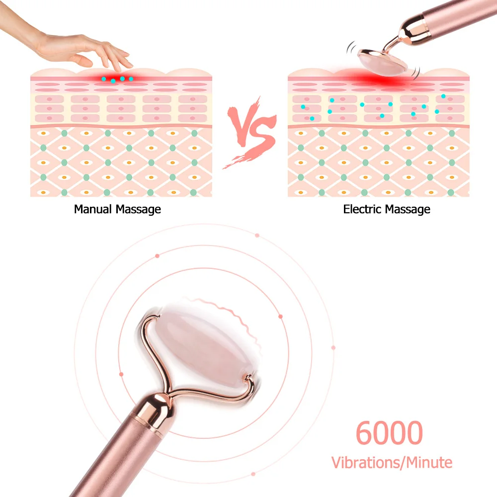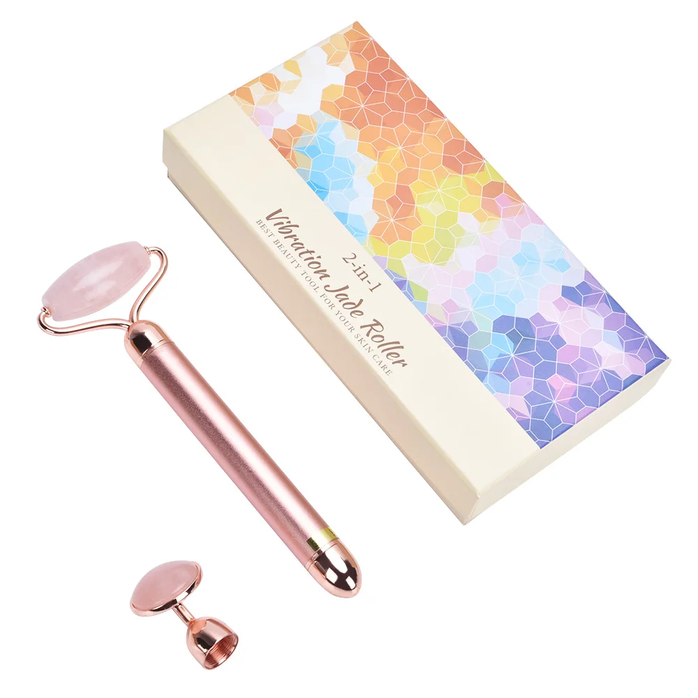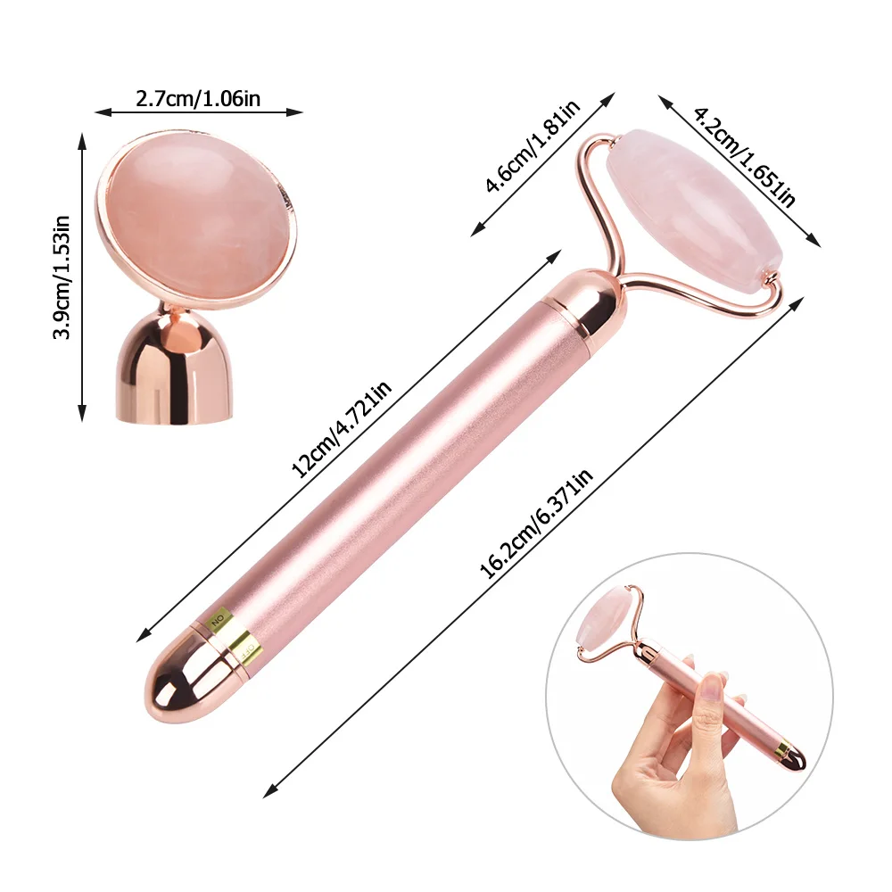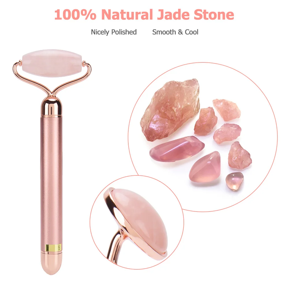 Электрический Вибрационный роликовый нефритовый ролик для лица, натуральный розовый кварцевый камень, лифтинг для лица, массажер для подтяжки кожи, нефритовый массажер для ухода за лицом